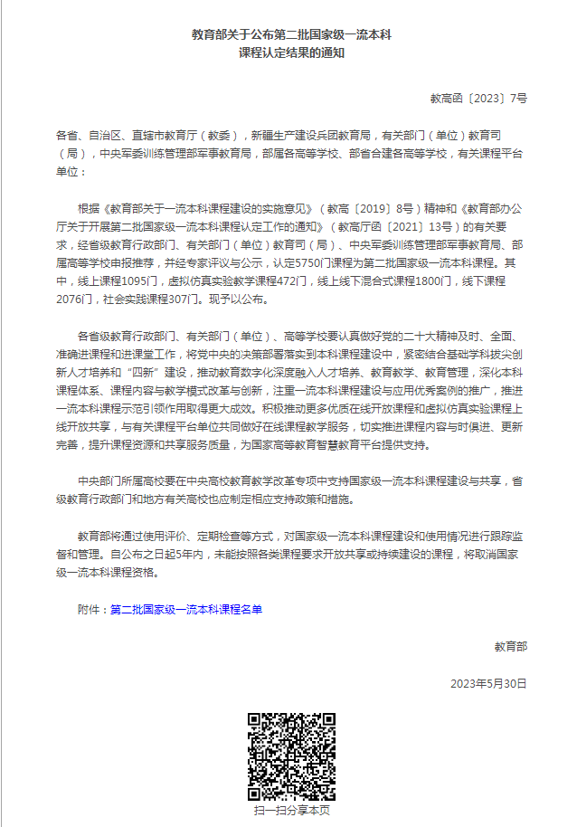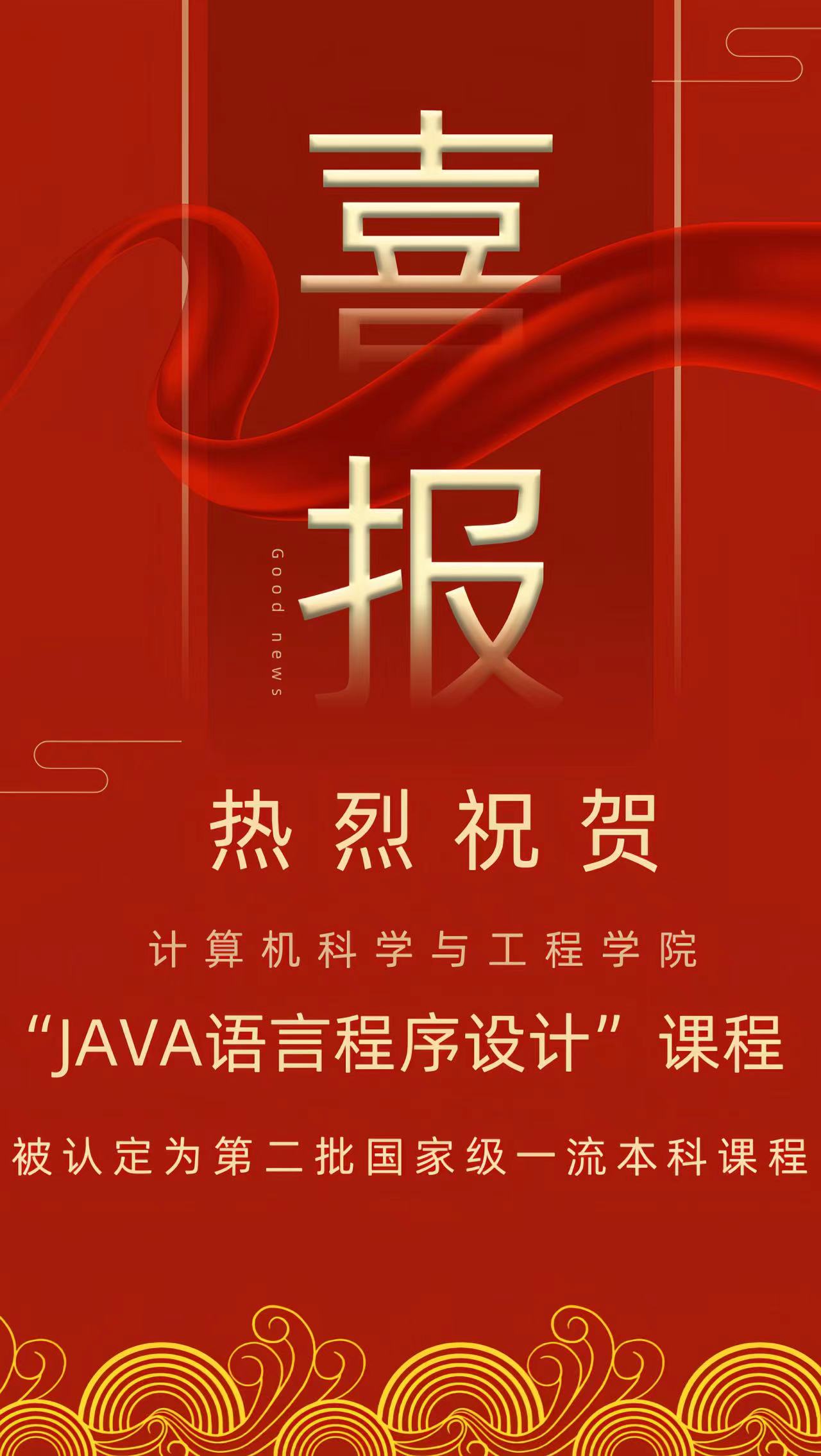5月30日,教育部发布了《教育部关于公布第二批国家级一流本科课程认定结果的通知》。我校计算机科学与工程学院《JAVA语言程序设计》课程被认定为线上线下混合式一流课程。