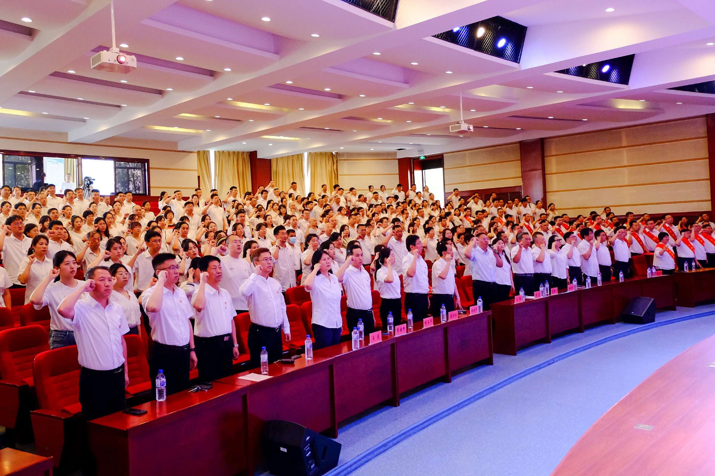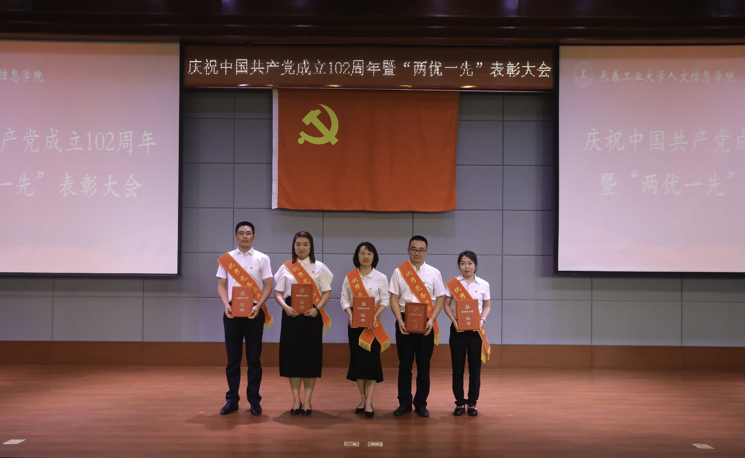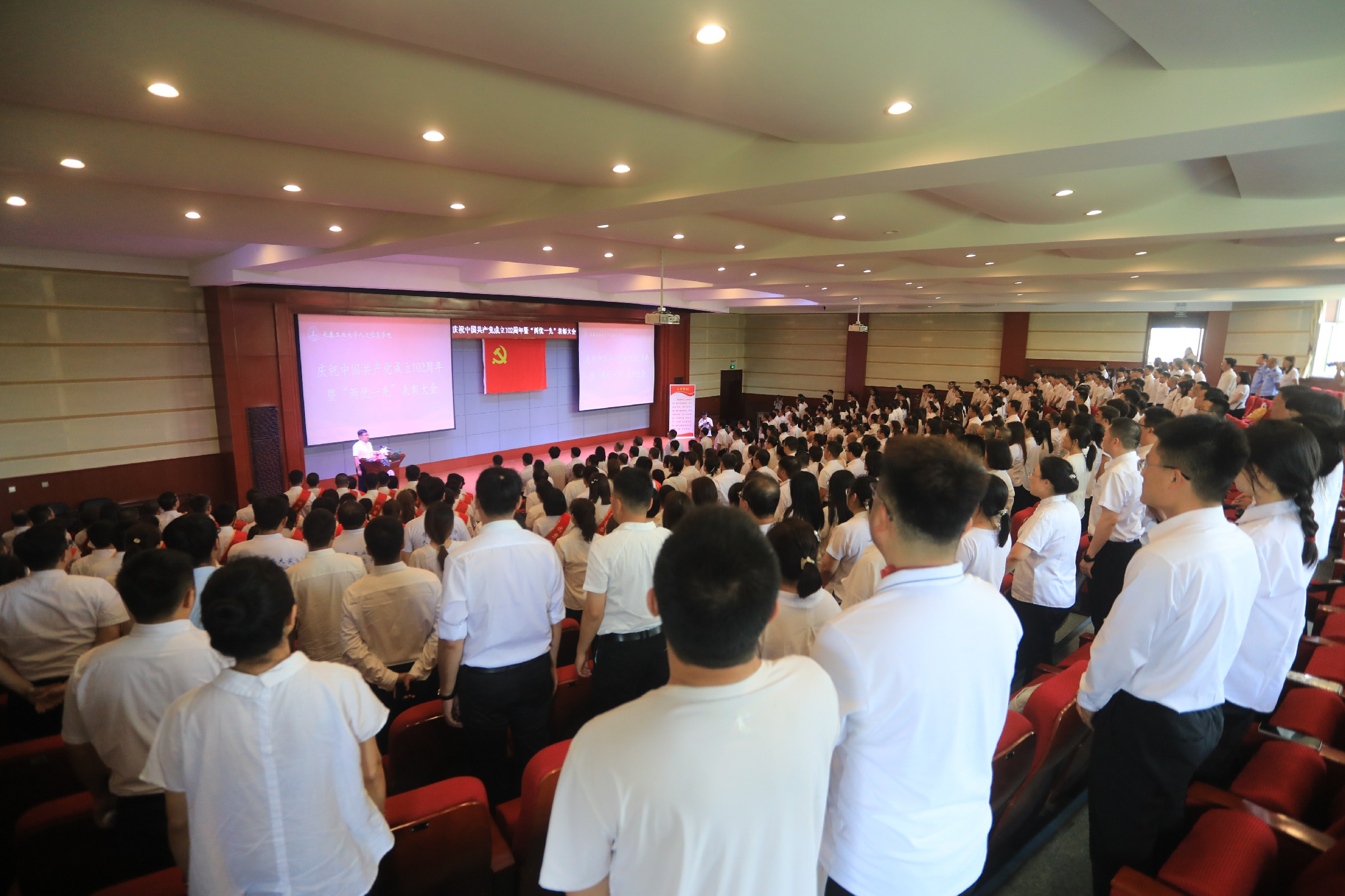 7月5日下午,我校在学术报告厅隆重召开庆祝中国共产党成立102周年暨“两优一先”表彰大会。学校创建人、董事长张兆华,校长潘福林,党委书记王煊等校领导班子成员、党委委员、全体教职工党员、部分学生党员代表和入党积极分子代表参加会议。