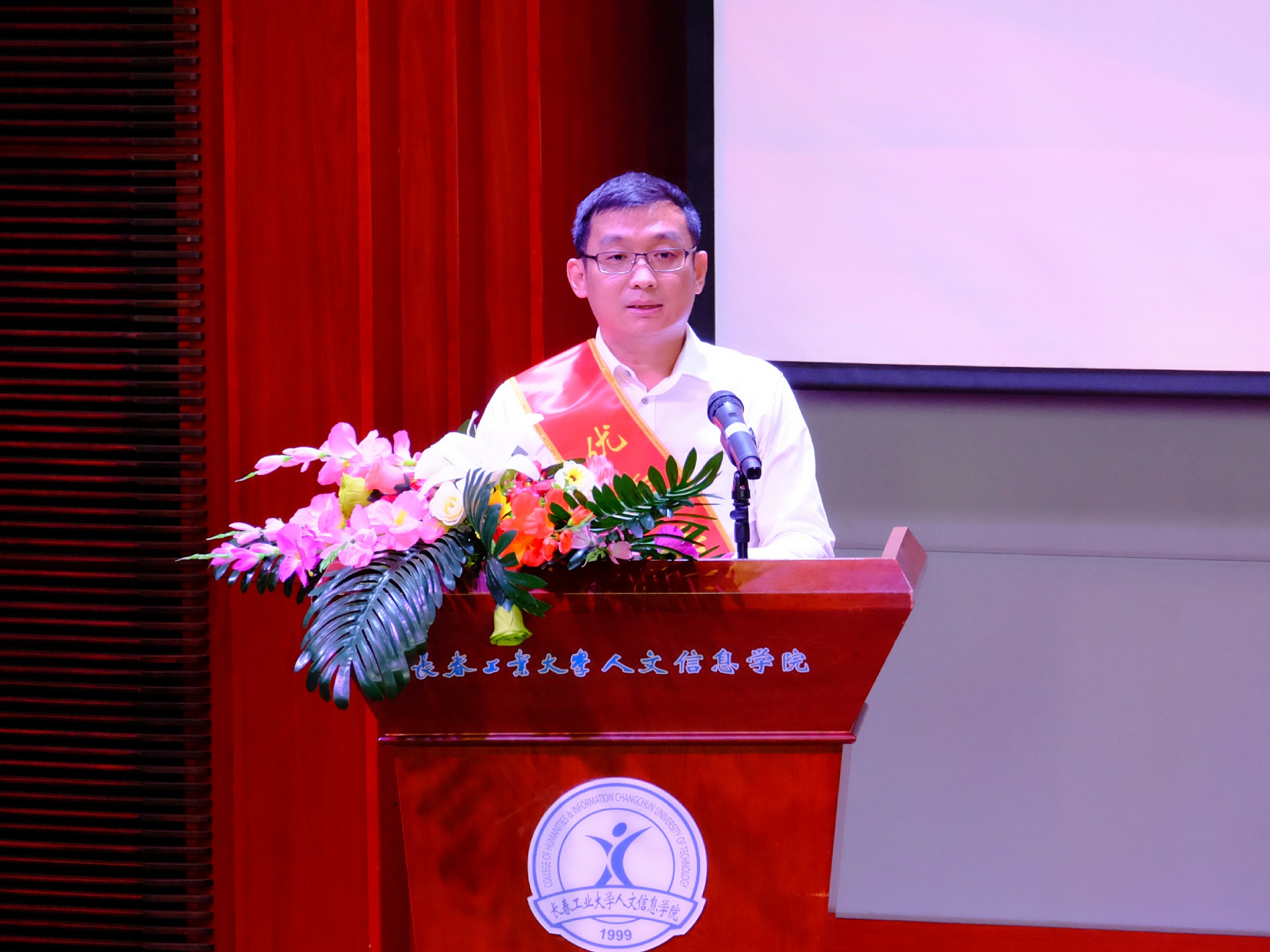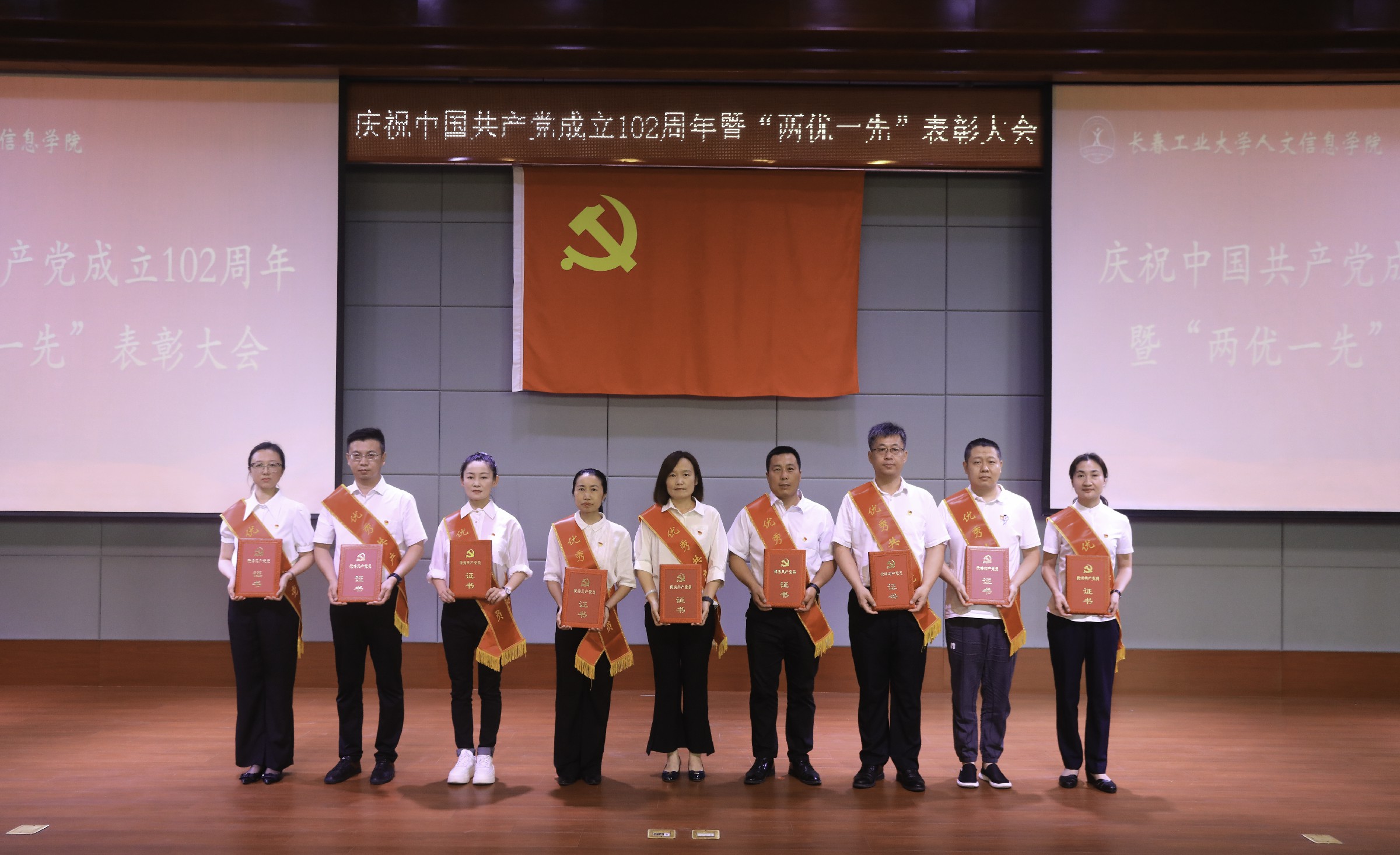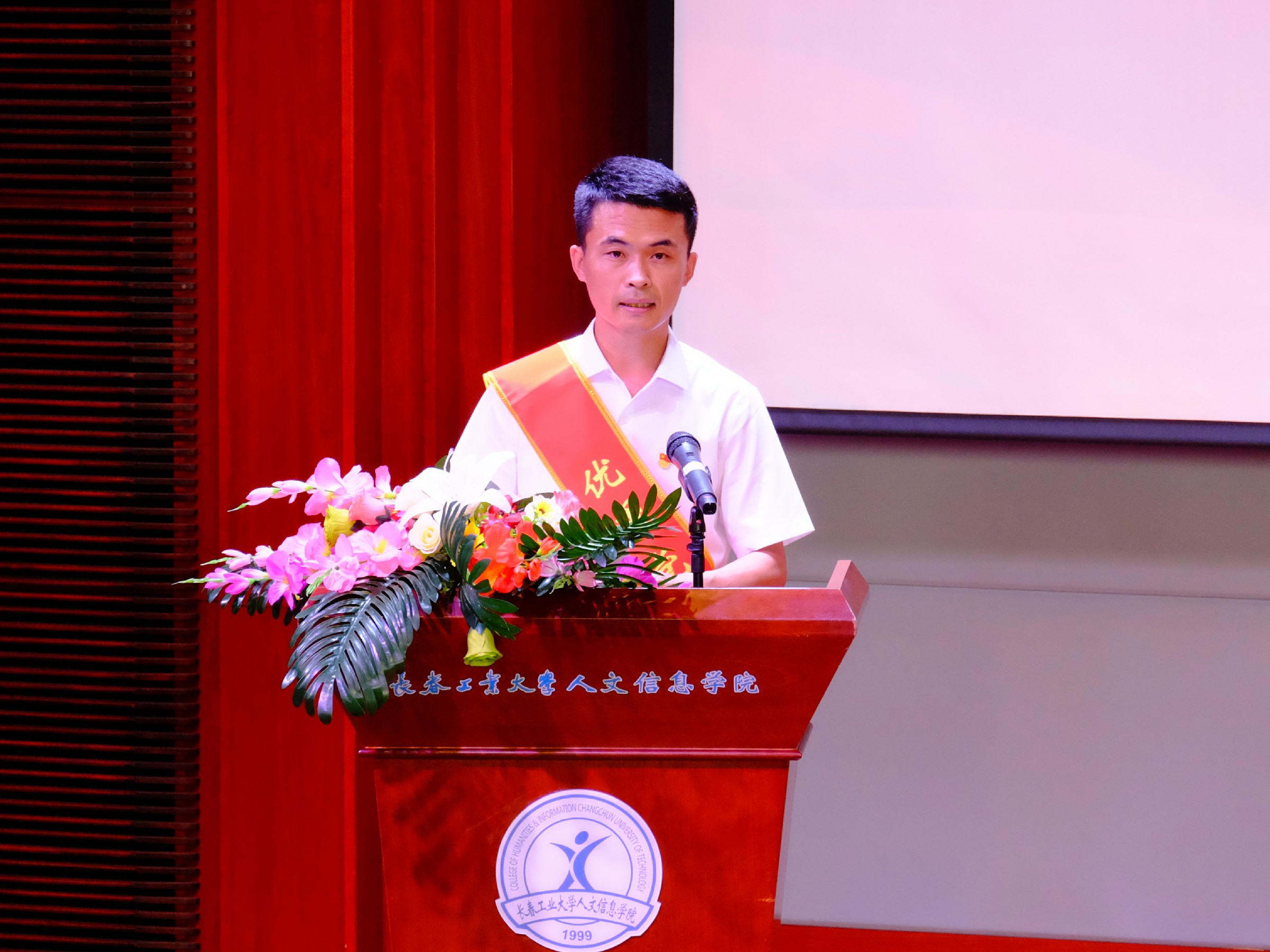 党委副书记周丹宣读《中共长春工业大学人文信息学院委员会关于表彰优秀共产党员、优秀党务工作者和先进基层党组织的决定》。