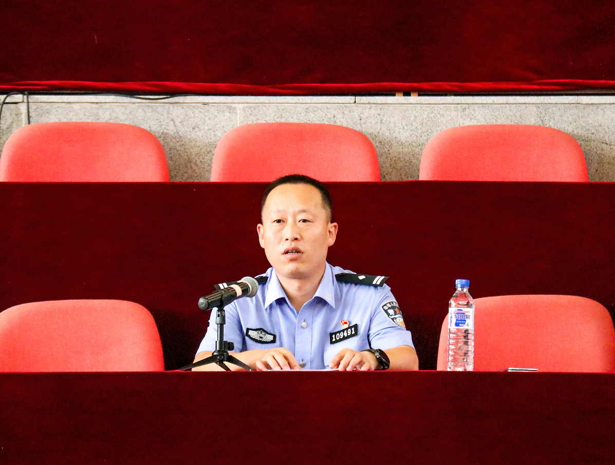 为扎实推进平安校园建设,提高学生们的校园安全意识和自我防护能力,抓紧抓实学生安全教育,9月8日下午,保卫处和学生工作处联合组织开展“2023级新生入学安全教育——校园安全第一课”。学校邀请长春市公安局净月分局福祉大路派出所所长赵兴业为新生做安全教育讲座。