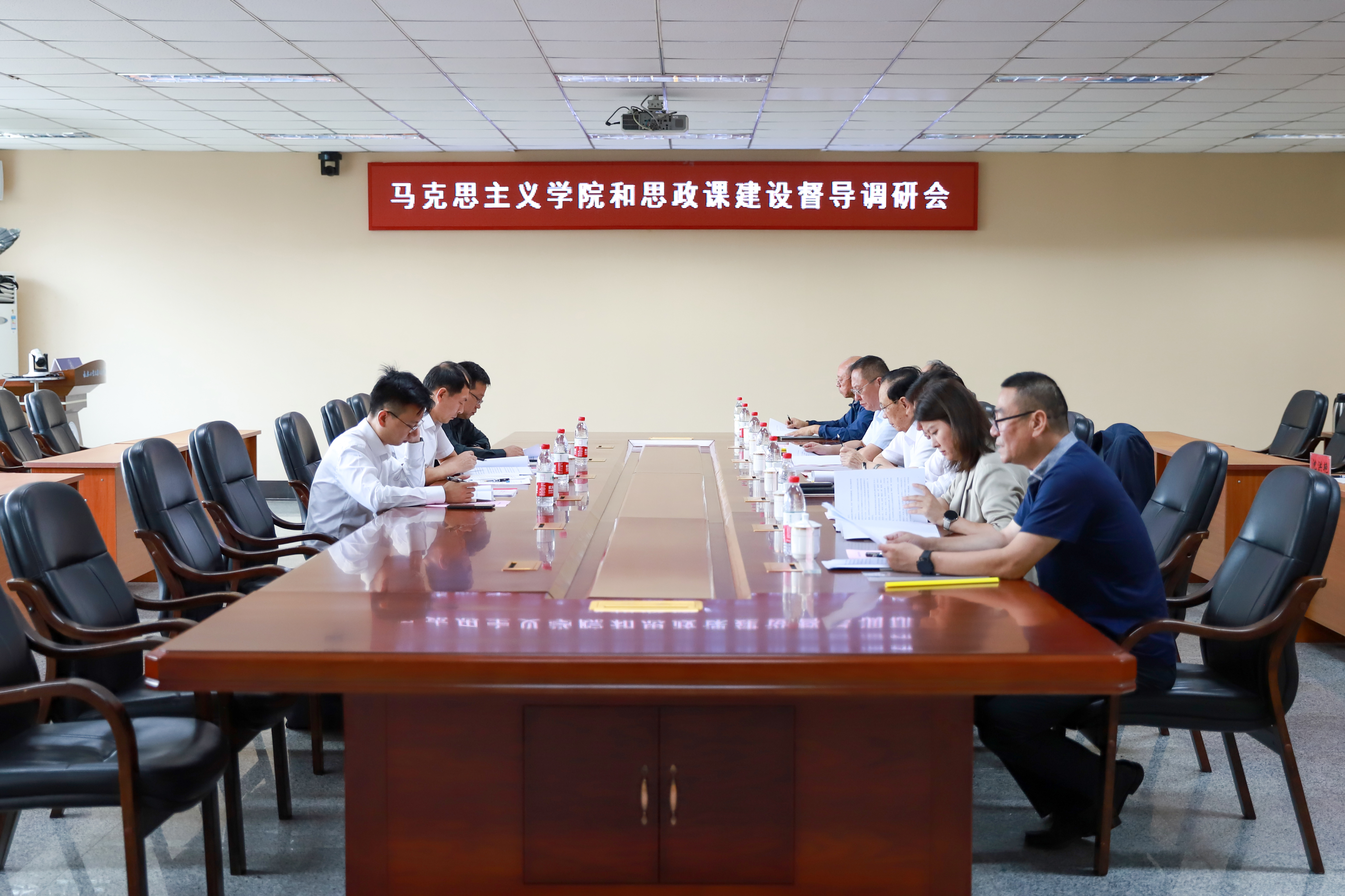 9月11日下午,省纪委监委驻省教育厅纪检监察组组长关忠诚,省教育厅高校思政处处长杨延秋,三级主任科员张天一莅临我校调研指导马克思主义学院和思政课建设工作并召开督导调研会。学校董事长张兆华,校长潘福林,党委书记王煊,党委副书记周丹,马克思主义学院院长范军,常务副院长李学锋,副院长卢伟,院长助理沈洪艳参加调研会。会议由王煊主持。