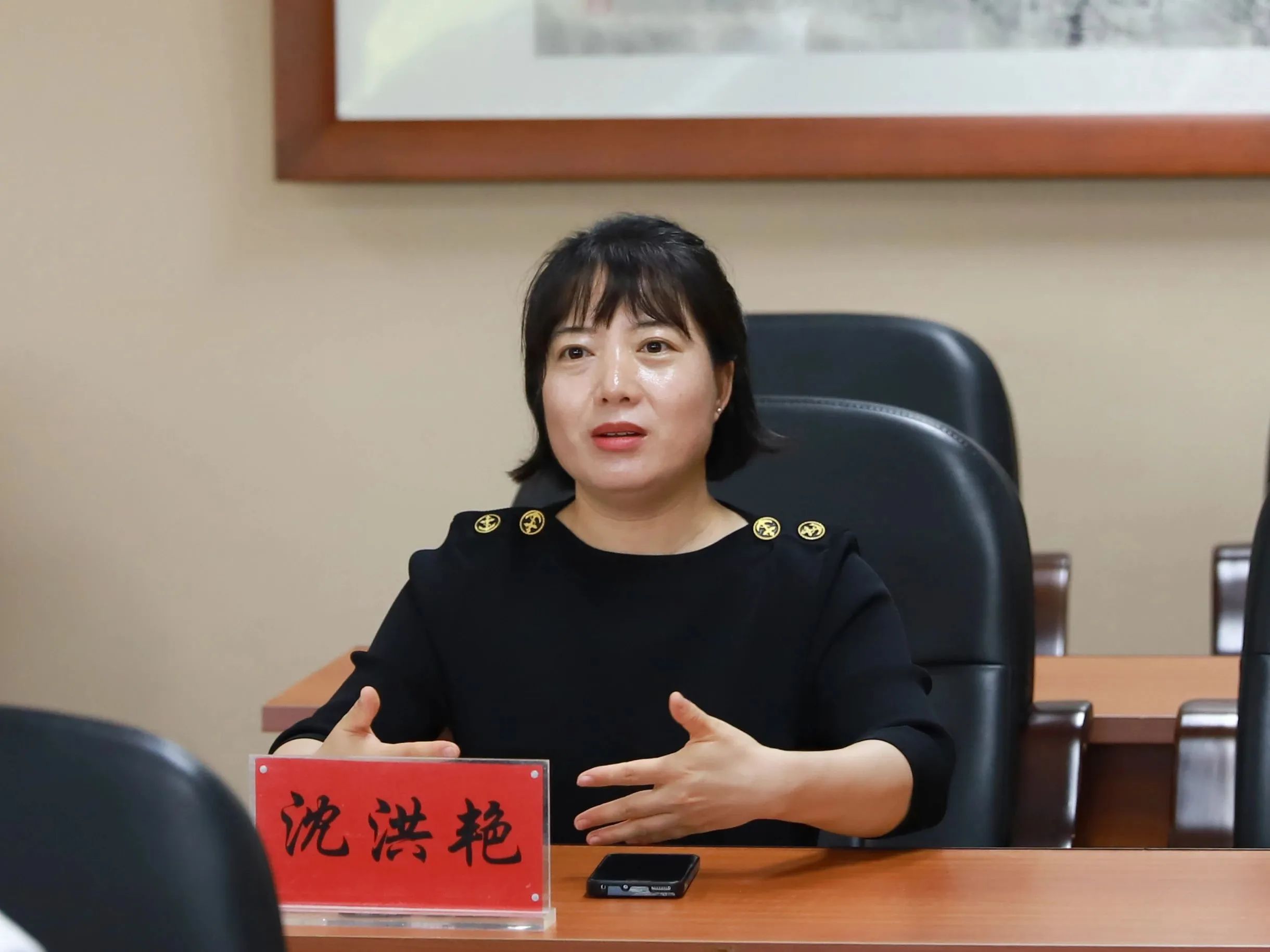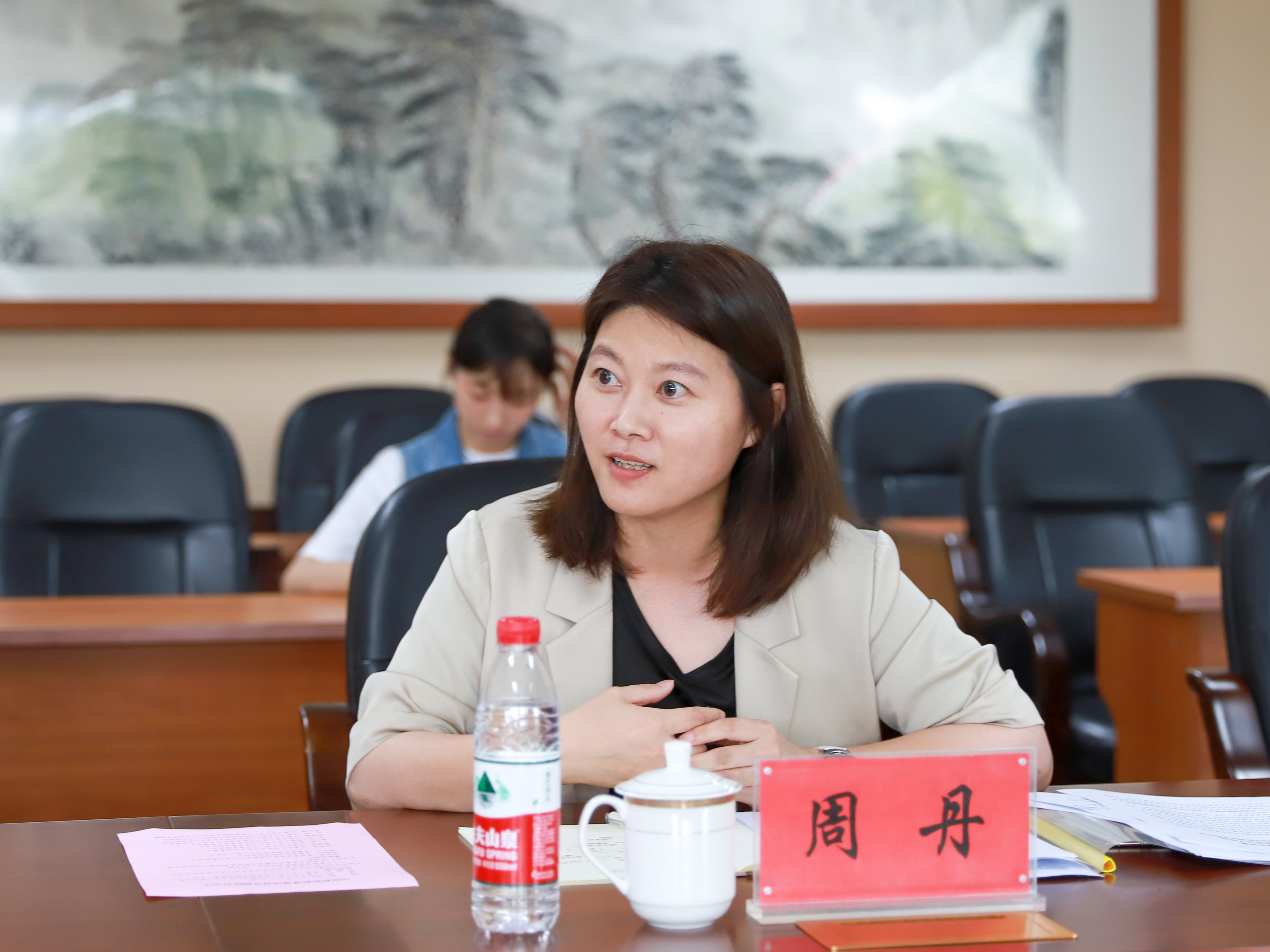 校长潘福林、校党委副书记周丹、马克思主义学院院长范军、院长助理沈洪艳分别就学校对马克思主义学院建设的重视、思政导师制度的创立、大思政课建设情况及如何提高思政课教师使命感和幸福感等方面做了情况介绍。
