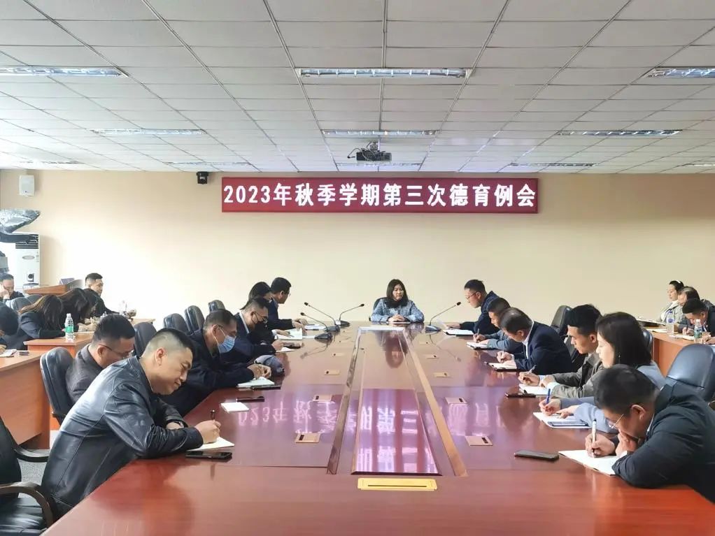2023年10月9日下午,学生工作处组织召开2023-2024学年度秋季学期第三次德育例会,各学院德育办主任、辅导员、学生工作处、团委全体人员参加会议,学生工作处处长庞旭主持会议,党委副书记周丹出席会议。