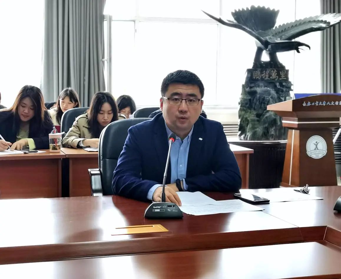 团委书记孟晔对青马班的开班仪式及青马考试的成绩进行了通报,对暑期三下乡项目评审答辩会、大学生啦啦操大赛、奉献教育学分统计、社团负责人换届通知、2023级新生团员档案、长春市民卡、长春市城市推荐官、吉林省青少年模拟政协提案等工作进行布置和说明。