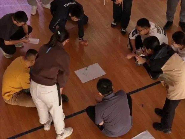 各组在队长的带领下,先后进行了“板羽PK赛”“螃蟹背西瓜”“妙笔生花”“超音速翻盘”“一圈到底”“两人三足”“长度大作战”“桃花朵朵开”等一系列拓展培训活动。