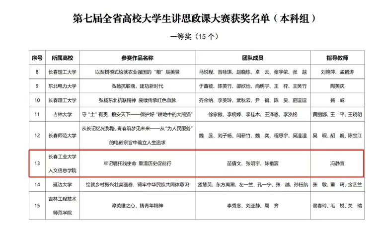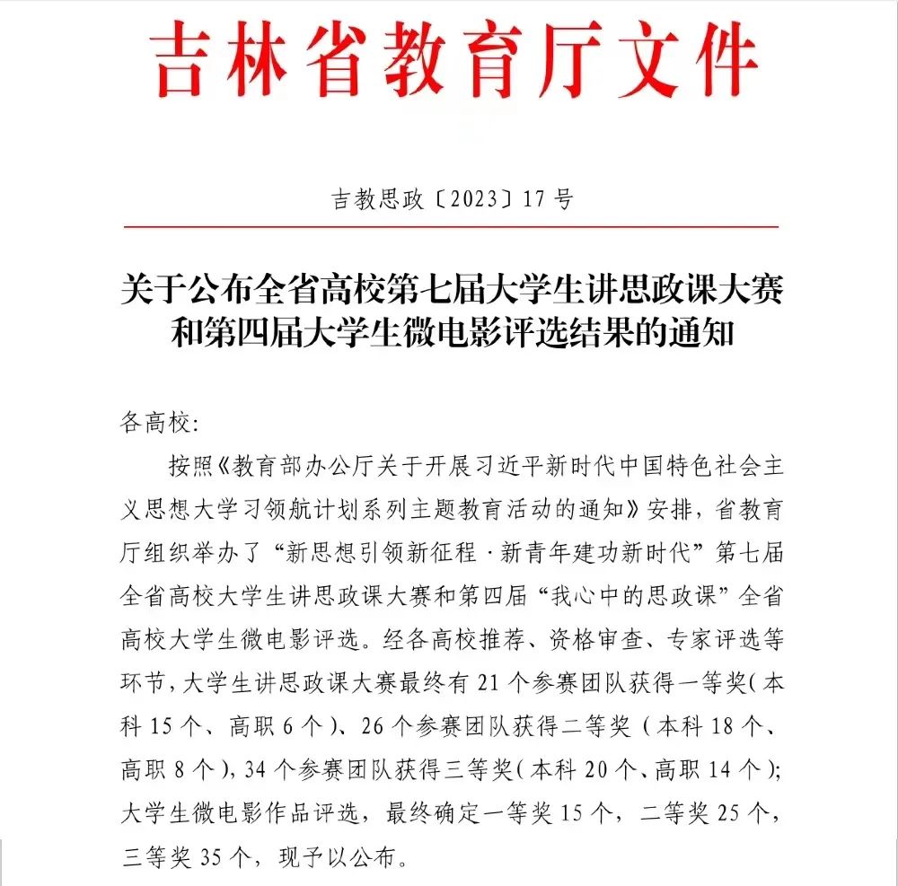 今年7至10月,按照《教育部办公厅关于开展习近平新时代中国特色社会主义思想大学习领航计划系列主题教育活动的通知》安排,吉林省教育厅组织举办“新思想引领新征程·新青年建功新时代”第七届全省高校大学生讲思政课大赛和第四届“我心中的思政课”全省高校大学生微电影大赛活动。