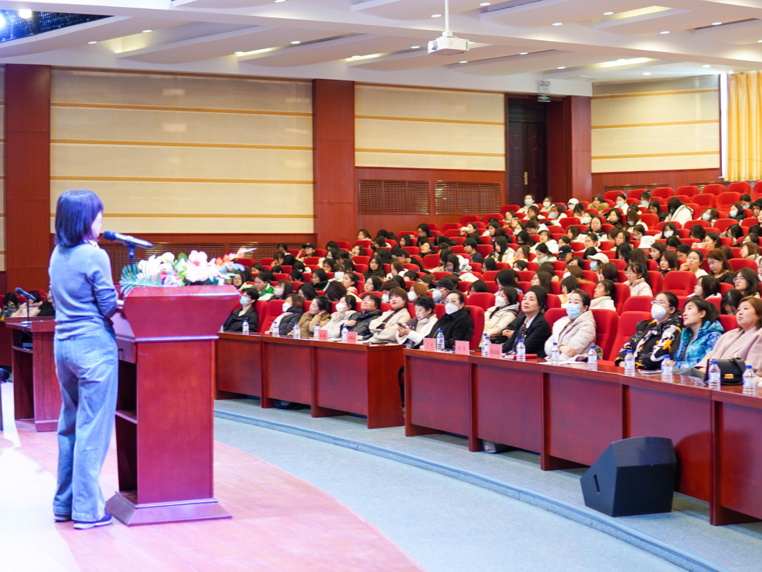 讲座由学校工会常务副主席、机关党委书记、妇委会主任范悦主持,学校部分女性教职工以及外国语学院全体师生500人参加。