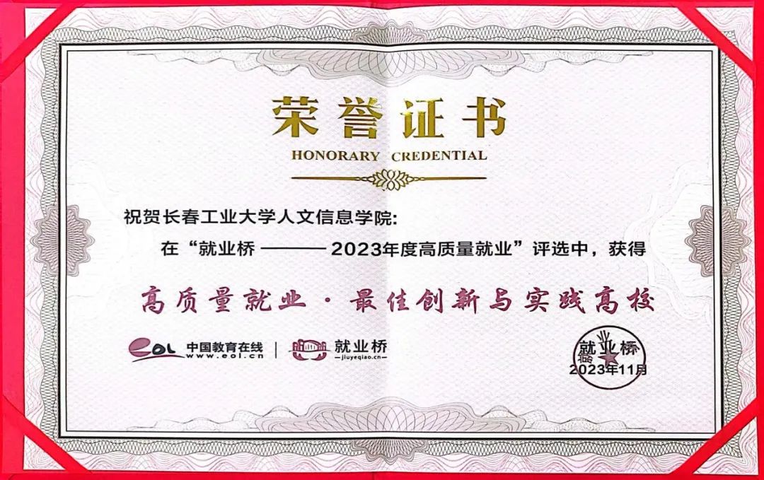 近日,中国教育在线“榜样力量·2023年度教育盛典”、就业桥“2023年高质量就业”评选获奖名单揭晓。在本次评选活动中,我校招生工作被评为“2023年度吉林省最受高中生喜爱本科院校”、就业工作被评为“高质量就业·最佳创新与实践高校”。
