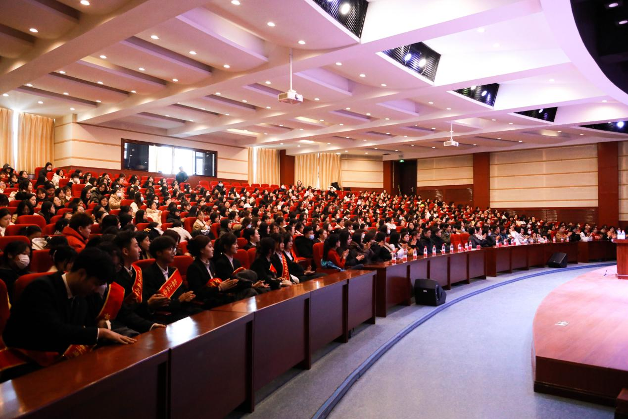 长春市妇产医院副院长刘迎新,长春市妇产医院社工部主任、副主任护师刘春红,学校女性教职工代表以及管理学院全体师生500余人参加。讲座由学校工会常务副主席、机关党委书记、妇委会主任范悦主持。