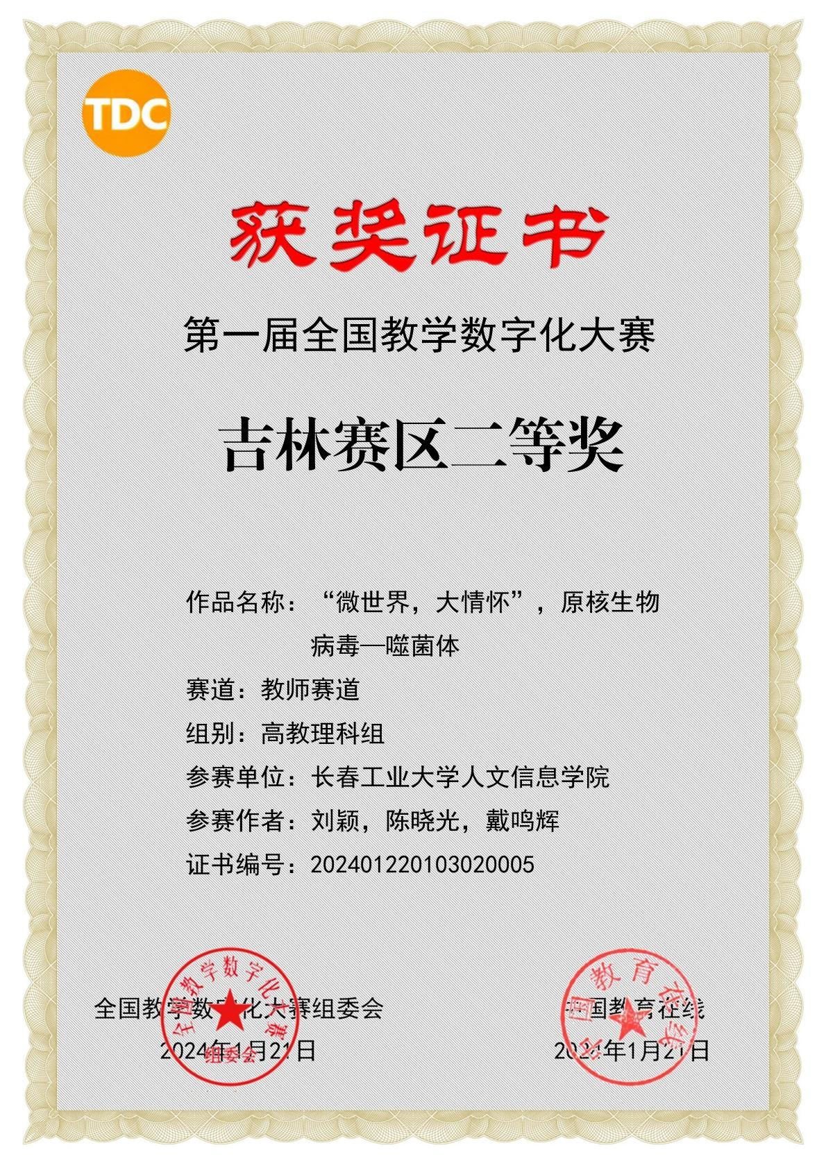 12月末,首届全国教学数字化大赛全国比赛进行网络评审。本次竞赛由中国教育在线和北京信息科技大学联合主办,经专家评审,我校教师刘颖提交的作品《“微世界,大情怀”,原核生物的病毒—噬菌体》,荣获吉林省赛区二等奖。