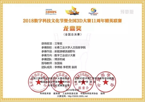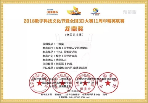 今年,为落实学院教学工作会议精神,积极备战第十一届全国三维数字化创新设计大赛暨11周年精英联赛,学院组织开展了长春工业大学人文信息学院第一届三维数字化创新及技能大赛,在校赛中评选出个人奖42项,团队奖4个,在此基础上选拔出2个团队参加吉林省赛区比赛,比赛采用网络评审的方式进行,我院夺得省赛特等奖两项,并推荐代表吉林省参加国赛,经过激烈角逐,我院机械工程系李博杨等同学团队设计的“十四缸星型发动机”和“新能源硬派越野车”作品获得国赛一等奖一项,三等奖一项的好成绩!