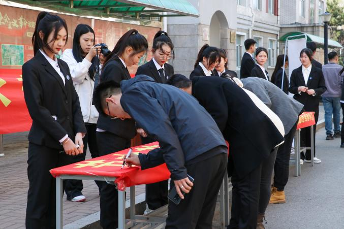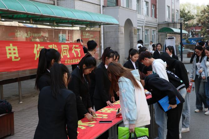 活动中师生们纷纷走到印有“节水节电 绿色生活 从我做起”横幅前,郑重地签下自己的名字,承诺用实际行动争做节水节电的实践者、示范者、传播者,做绿色校园建设最坚定的支持者。
