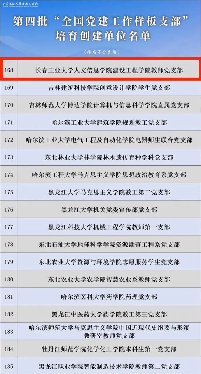 近日,教育部办公厅印发了《关于公布第四批全国党建工作示范高校、标杆院系、样板支部培育创建单位名单的通知》(教思政厅函〔2024〕7号),我校建设工程学院教师党支部入选第四批“全国党建工作样板支部”培育创建单位。