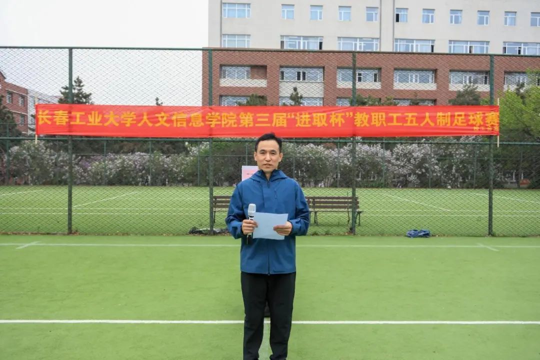 为庆祝新中国成立75周年,深入学习贯彻落实党的二十大和中国工会十八大精神,广泛开展全民健身活动,提高教职工生活品质,营造健康积极的校园文化,5月6日,由学校工会主办、教职工足球协会承办、体育教研部协办的学校第三届“进取杯”教职工五人制足球赛拉开帷幕。开幕式由校工会常务副主席、机关党委书记范悦主持。