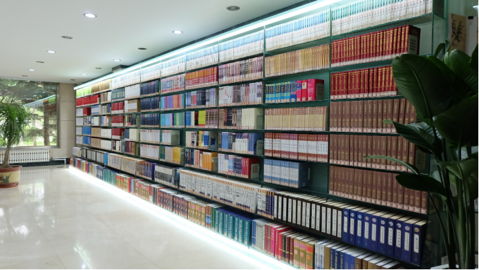 4月23日世界读书日当天,图书馆一楼大厅辞书展架盛装开展。钢化玻璃书架搭配灯光装饰,馆内辞书整齐摆放,每位读者一踏入图书馆,浓厚的书香便迎面而来。