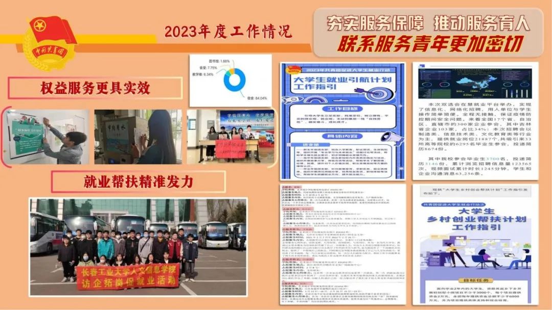 三是就业帮扶精准发力。深入落实共青团促进大学生就业专项行动,配合举办2023届毕业生企业双选会,组织100名大学生参加“返家乡”、大学生社区实践计划。团干部专项结对帮扶40名毕业生顺利就业,就业率达100%。课题《吉林省大学生留省就业影响因素及对策研究》,被团省委认定为2023年度吉林省青少年发展研究计划优秀课题。