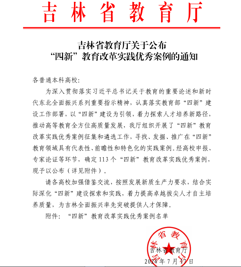 喜报|我校获评吉林省教育厅“四新” 教育改革实践优秀案例