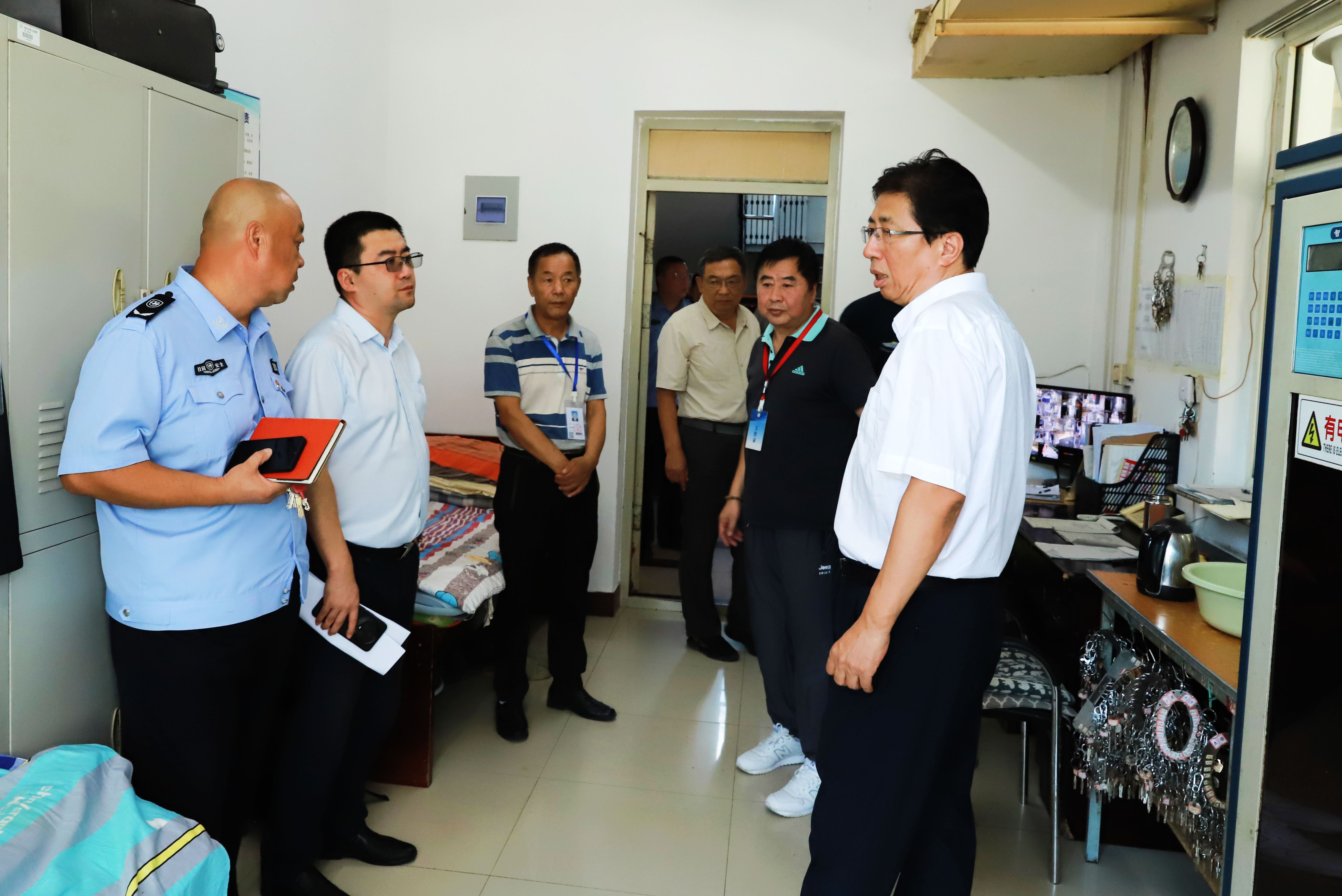 8月28日,由校长潘福林带队,分管安全校领导张哲人,保卫处处长刘强、学生工作处处长庞旭、后勤处处长刘磊和相关工作人员组成检查组,对学校舍务、后勤、保卫等部门执勤、住宿场所进行安全检查。