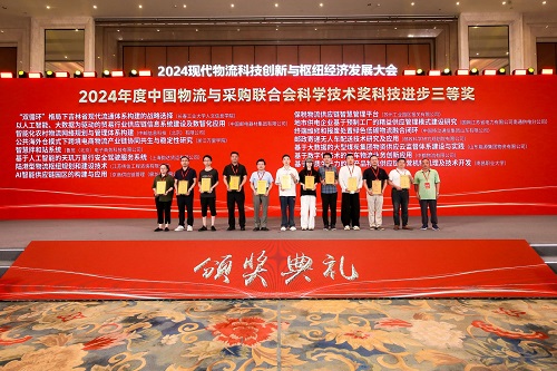 9月3日-4日,2024年度中国物流与采购联合会科学技术奖颁奖典礼在安徽合肥市召开的现代物流科技创新与枢纽经济发展大会上举办。我校申报的科研成果荣获2024年度中国物流与采购联合会科技进步三等奖。