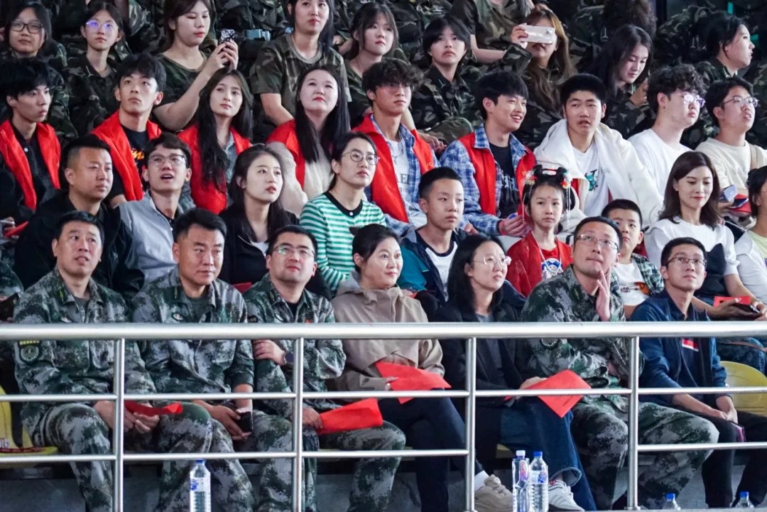 校党委副书记周丹,学生工作部部长庞旭,团委书记孟晔,学生工作部副部长田磊,团委副书记戴进,2024级新生辅导员,以及全体新生近三千人齐聚一堂,共享这场视听盛宴。