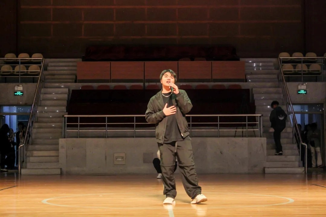 电气与电子工程学院的《天地龙鳞》将现场气氛点燃,演唱者用浑厚有力的嗓音将一幅蕴含民族精神的画卷徐徐展开。大气磅礴的旋律在空气中回荡,仿佛带领着观众穿越时空,回顾中华民族历经六百年的风雨沧桑。
