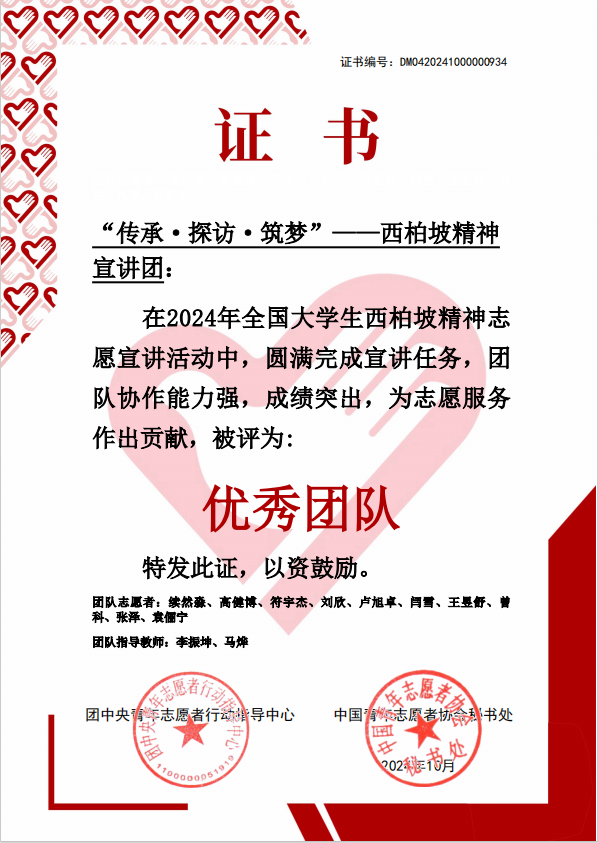由团中央青年志愿者行动指导中心、中国青年志愿者协会秘书处开展的西柏坡精神宣讲活动落下帷幕,管理学院“传承·探访·筑梦”西柏坡精神宣讲团在指导教师的带领下,经过层层选拔,从全国1000支队伍中脱颖而出,入选100支优秀团队,荣获“优秀团队”称号。