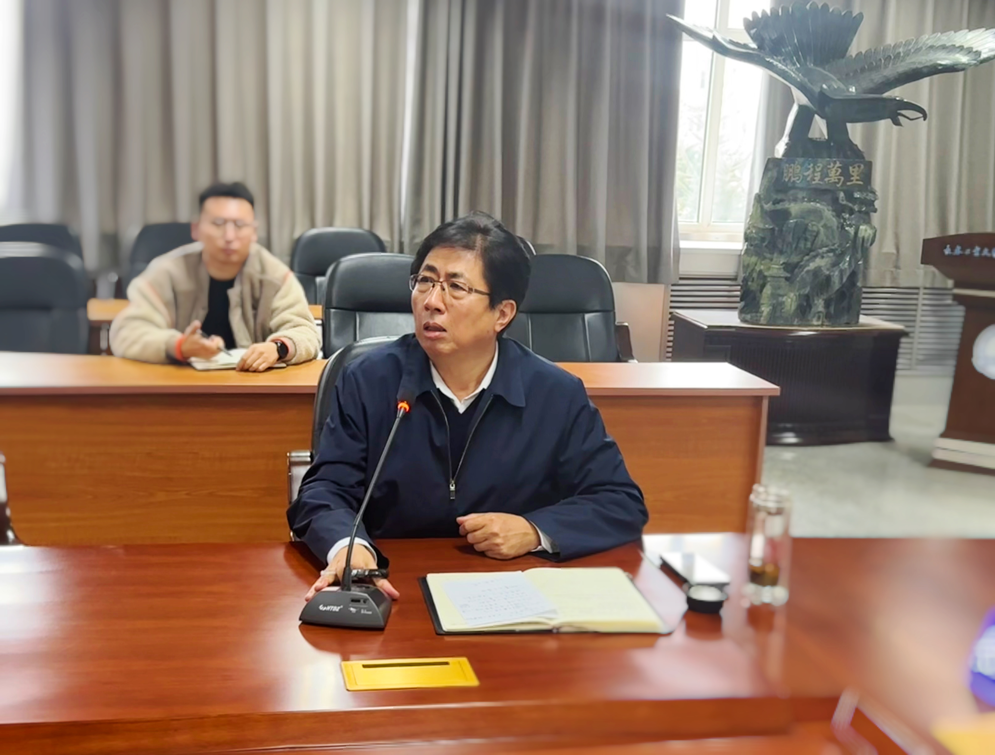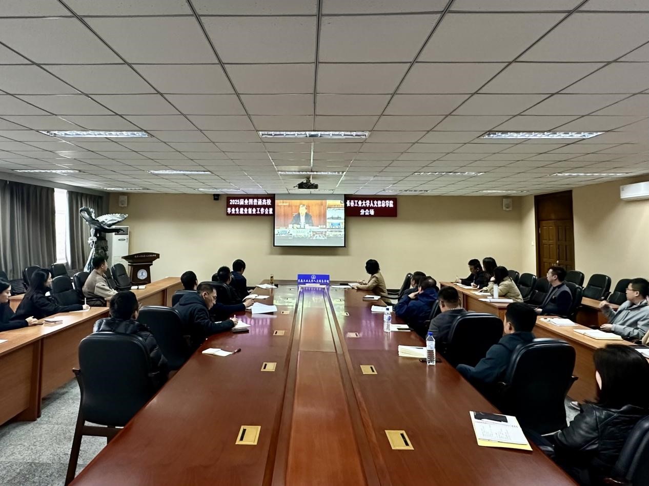 学校在三楼会议室设置分会场,校长潘福林,校长助理王爽,各学院党总支书记、全体毕业班辅导员、招生就业处全体人员参加视频会议。