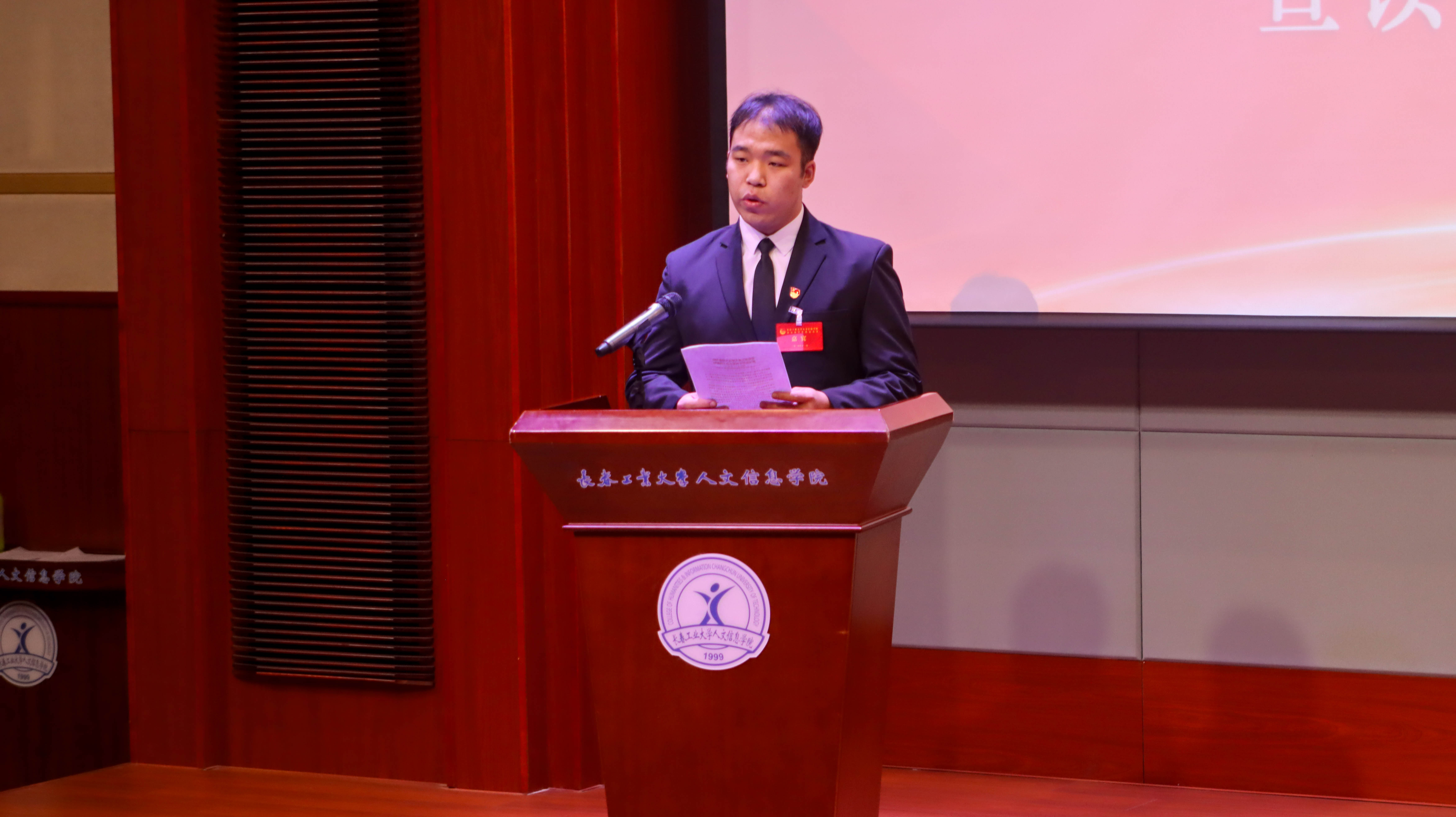 长春工业大学学生会执行主席 王佳硕同学宣读贺信