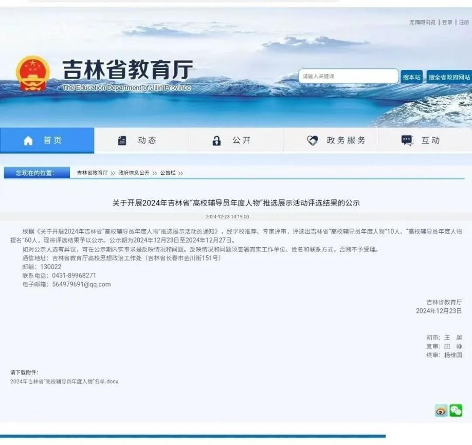 近日,由吉林省教育厅高校思想政治工作处组织开展的2024年吉林省“高校辅导员年度人物”推选展示活动评选结果公布。我校辅导员闫鹏荣获2024年吉林省“高校辅导员年度人物”提名奖。