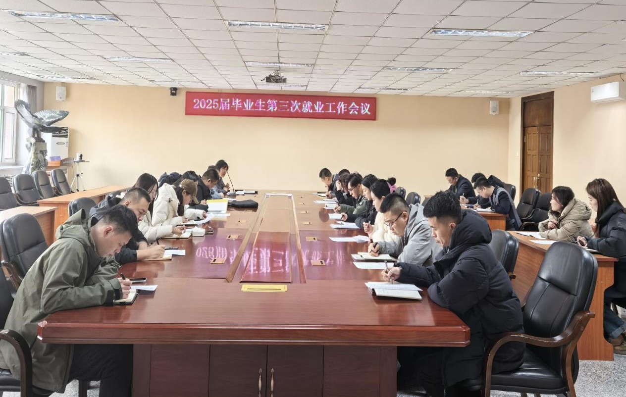 为总结学校现阶段就业工作进展情况,积极应对当前就业形势,进一步增强就业工作紧迫意识,提升就业指导服务水平,3月4日,学校召开2025届毕业生第三次就业工作会议。2025届毕业班辅导员、招生就业处全体人员参加会议。校长助理王爽主持会议并讲话。