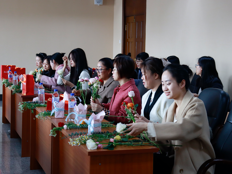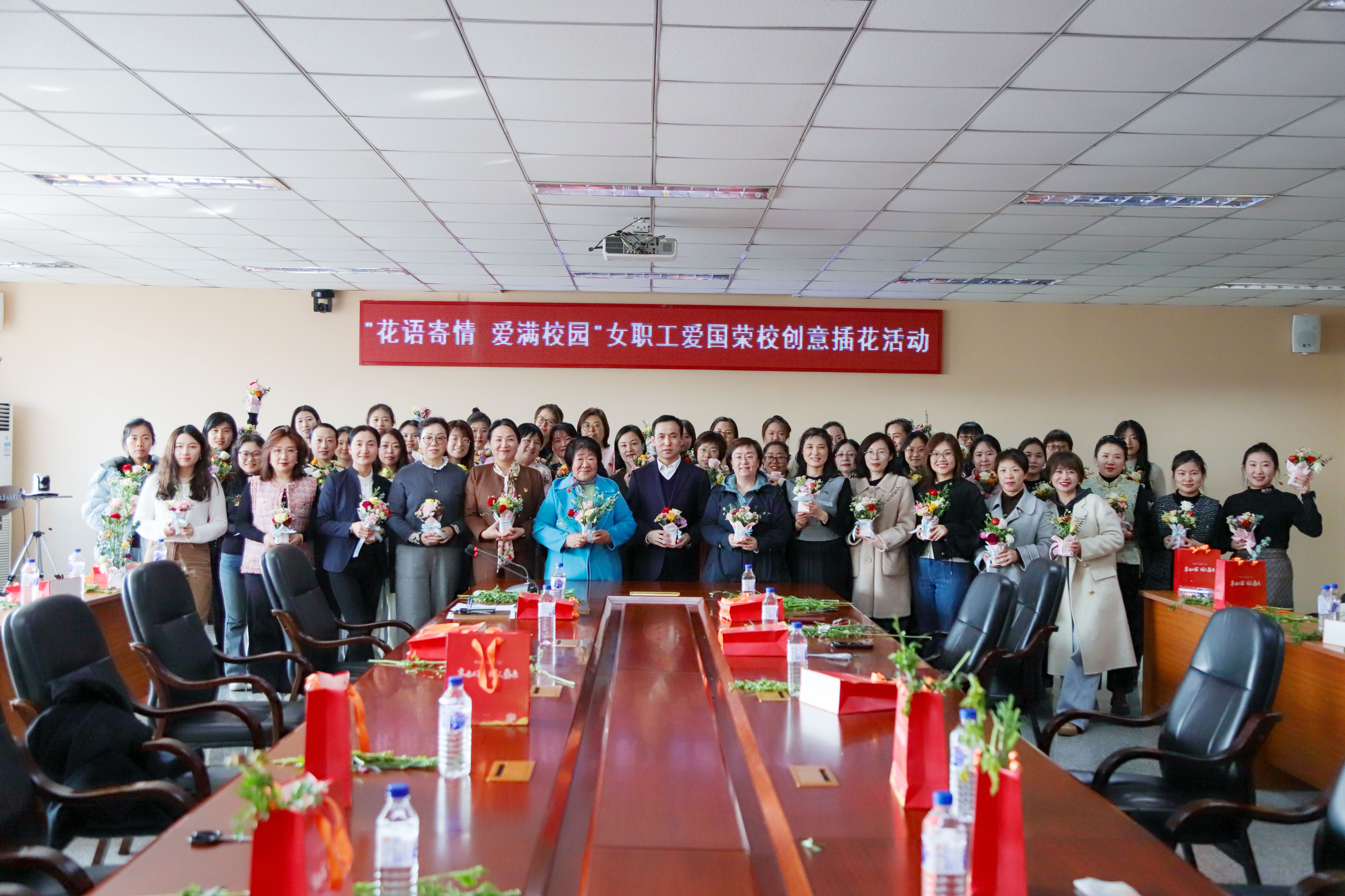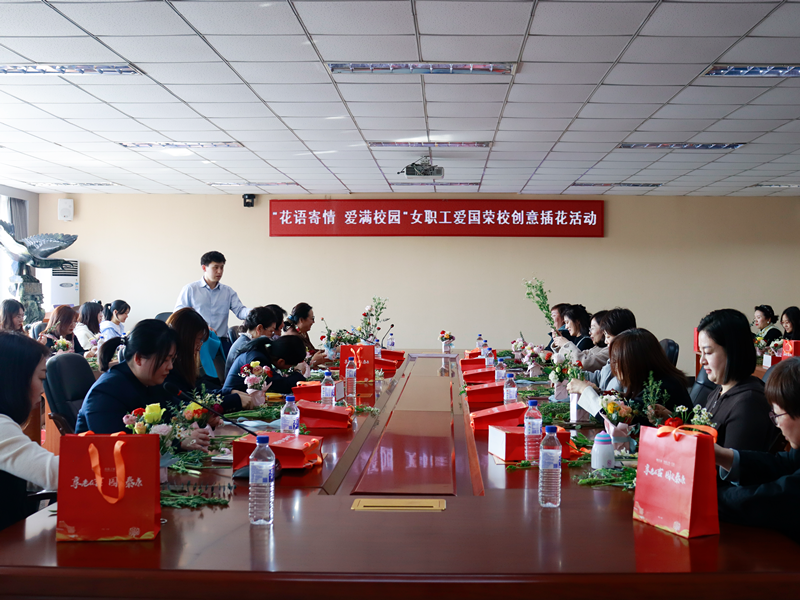 2025年3月7日,在第115个国际劳动妇女节来临之际,我校工会组织开展了“花语寄情 爱满校园”女职工爱国荣校创意插花交流活动。来自学校40余名女职工代表参加。学校副校长、工会主席李晓科出席活动并讲话。工会常务副主席、妇委会主任范悦主持活动。