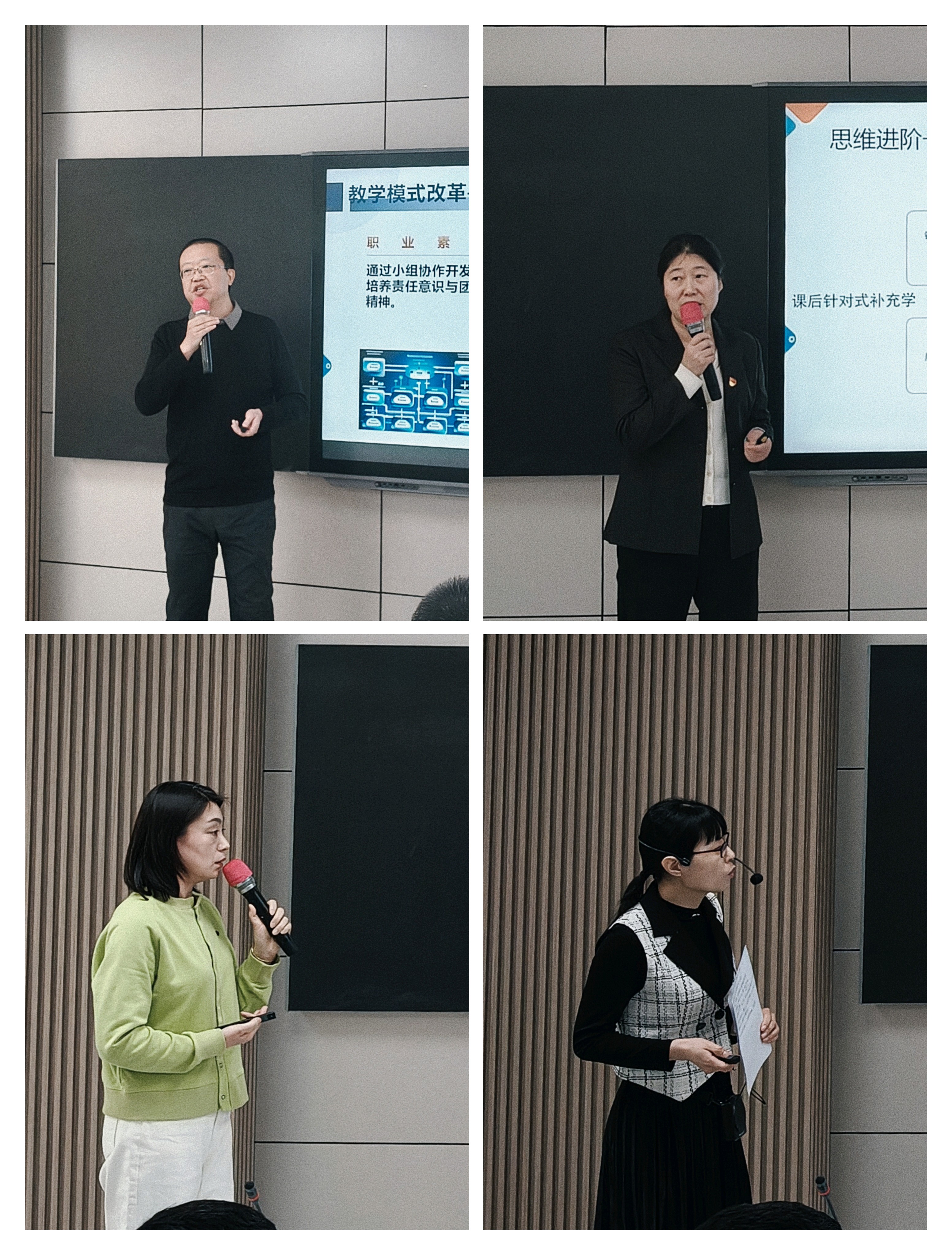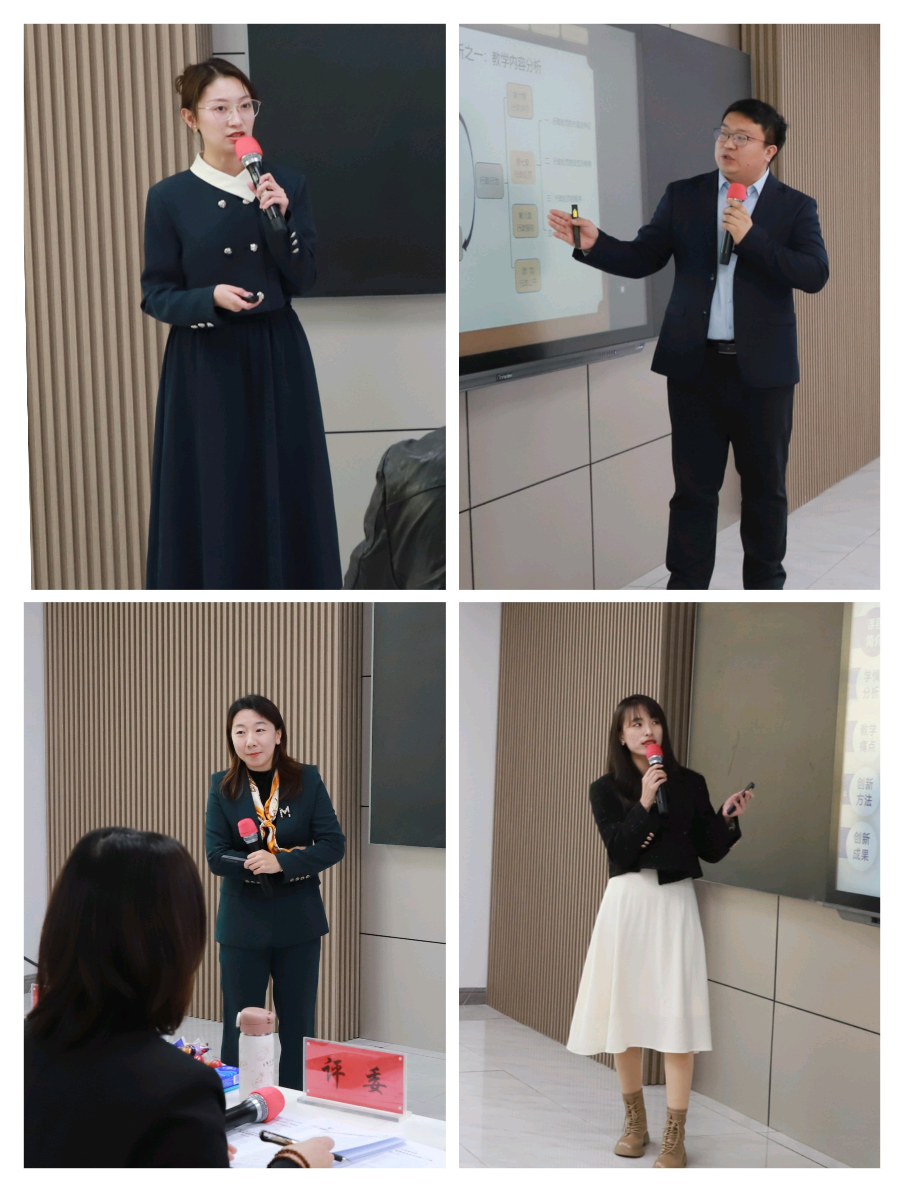 进入决赛的12位教师通过教学创新成果汇报,展现了各自的教学风采。评委对每位教师的创新成果报告和现场汇报进行了逐一点评,针对报告和汇报中存在的问题,从教创赛要点梳理、教学痛点挖掘、教学模式创新、教学成果凝练等方面给予了建设性意见与建议。经专家组现场评议,评选出校赛一、二、三等奖。