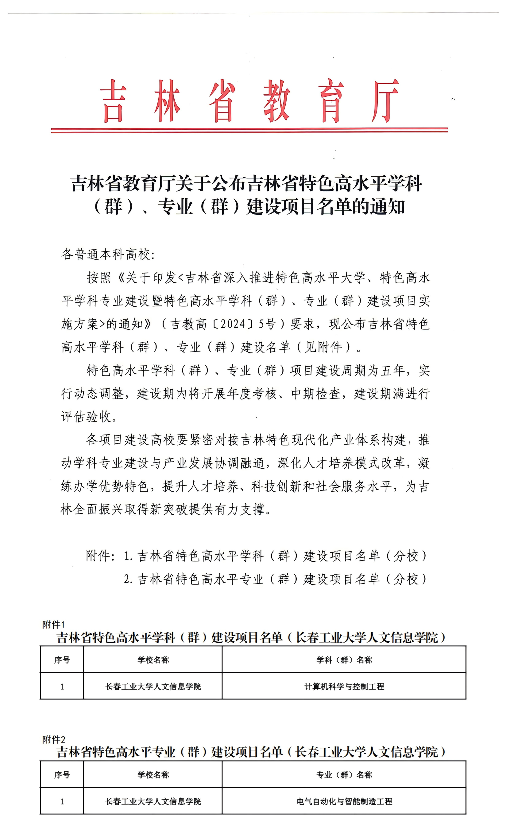 近日,吉林省教育厅公布《关于公布吉林省特色高水平学科(群)、专业(群)建设项目名单的通知》,我校计算机科学与控制工程学科(群)成功获批吉林省特色高水平学科(群)建设项目,电气自动化与智能制造工程专业(群)成功获批吉林省特色高水平专业(群)建设项目。
