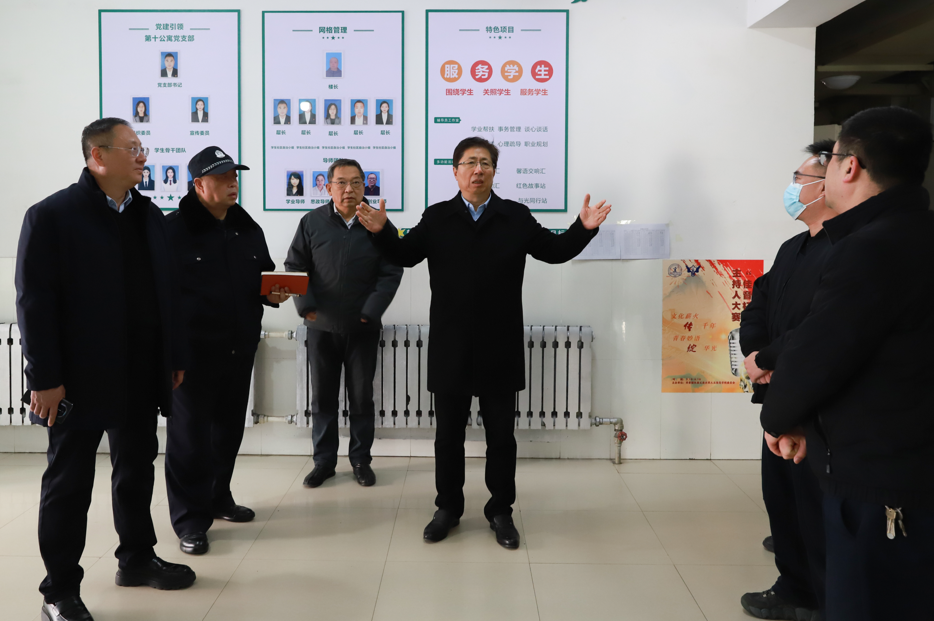 为贯彻落实省委、省政府安全工作部署,全力做好宿舍安全工作,全面细致排查、消除宿舍安全隐患,3月28日上午,校长潘福林、党委书记王煊、党委副书记周丹、纪委书记张哲人、保卫处处长刘强、学生工作处处长庞旭、全体辅导员及相关工作人员组成检查组,对全校学生宿舍安全卫生进行检查。