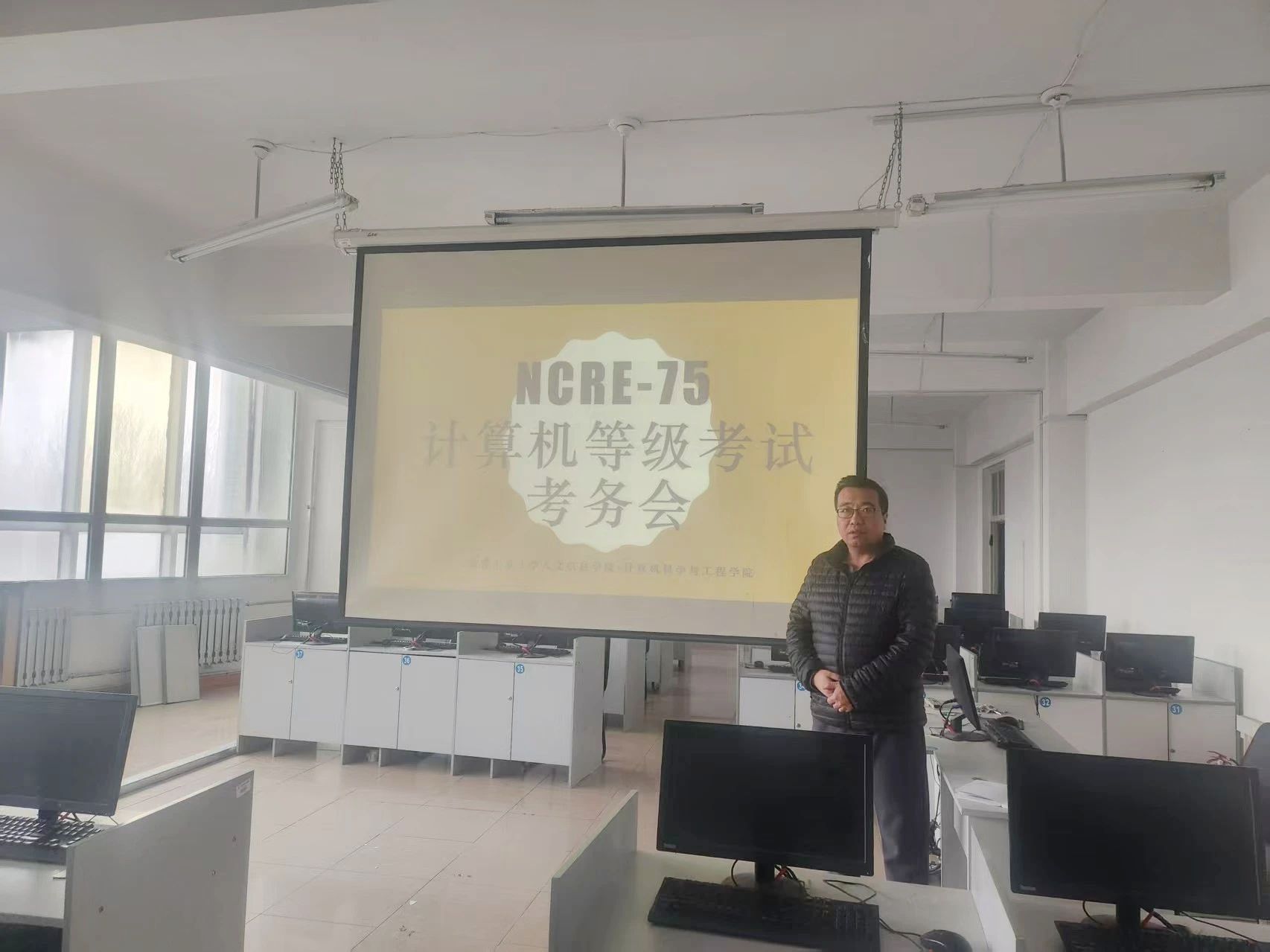 在考前准备工作中,计算机科学与工程学院本着细致负责的态度,根据全省NCRE考点考务工作会议的工作要求,多次组织监考教师模拟学习监考流程和突发情况处理,严格按照考试要求布置考场,配备应急方案,应对突发情况。各位机房负责教师利用课余时间做了数次数据调整、软件安装、应用配置、网络环境检测等工作,保证了考试机房软硬件的良好运行,顺利通过全批次的考前模拟测试。