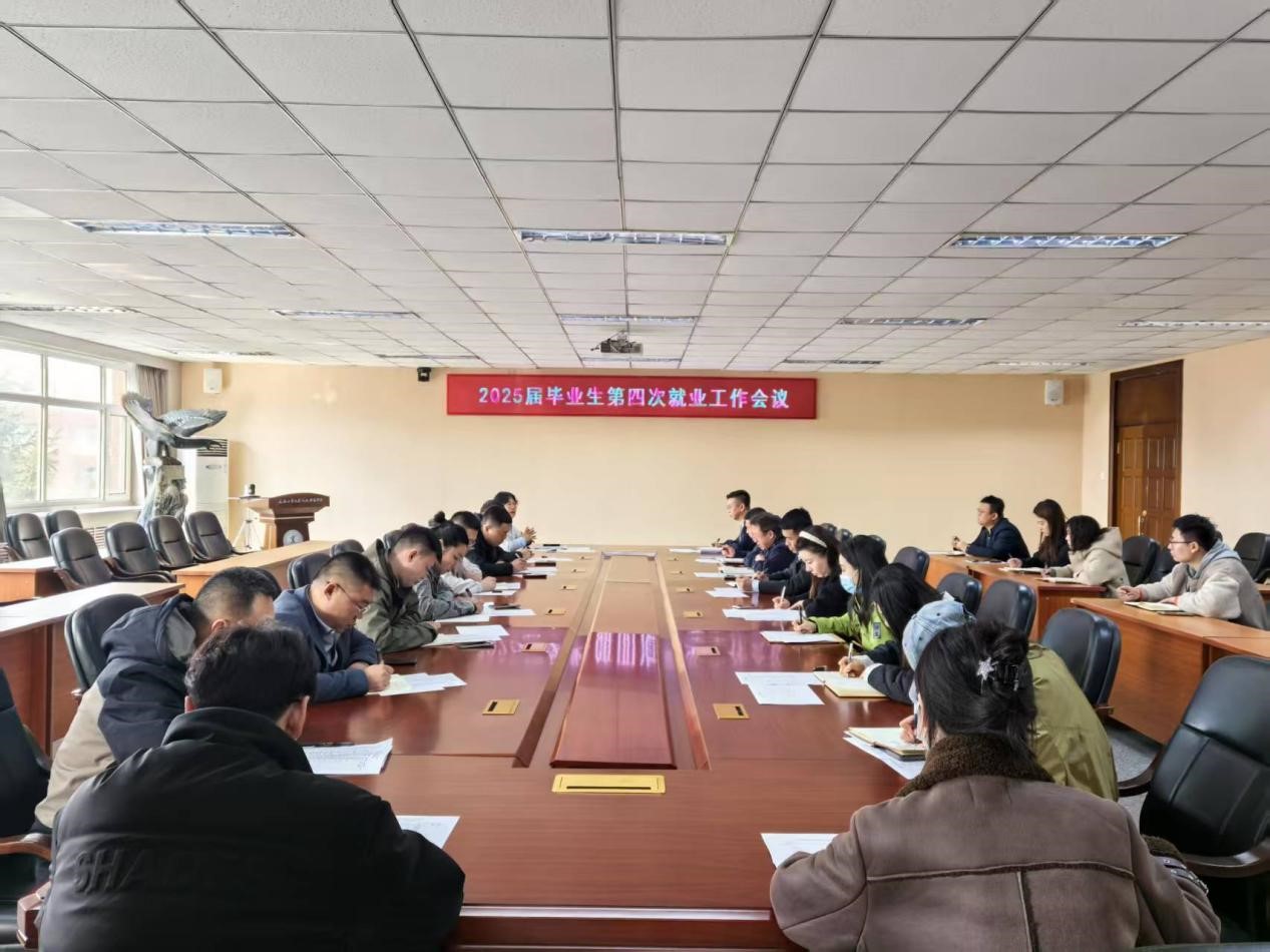 为全面推进2025届毕业生实现高质量充分就业,总结学校现阶段就业工作进展情况,全面分析当前就业形势,部署下阶段就业工作重点任务,4月8日,学校召开2025届毕业生第四次就业工作会议。2025届毕业班辅导员、招生就业处全体人员参加会议。校长助理王爽主持会议并讲话。