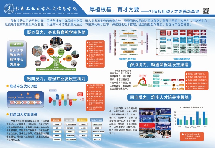 厚植根基,育才为要——打造应用型人才培养新高地。以数据可视化呈现专业集群,模块化课程架构及竞赛成果矩阵,多维协同全方位培育高素质人才。