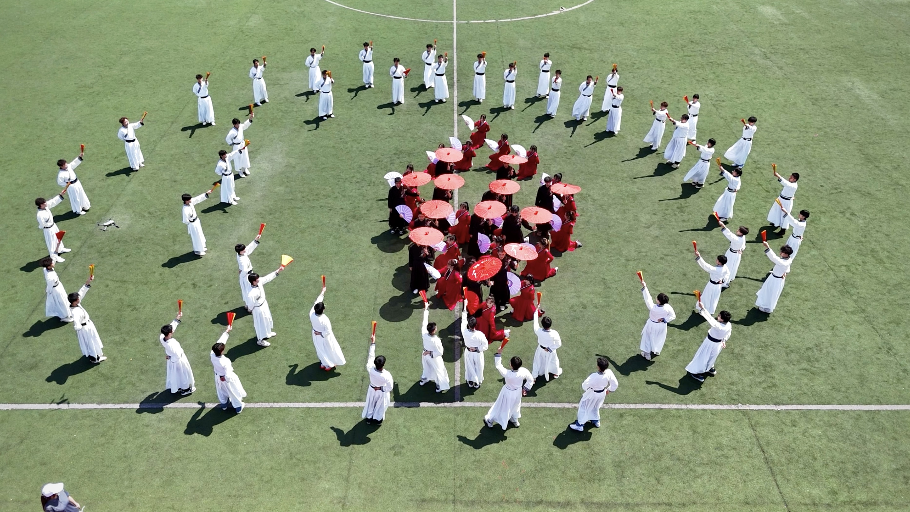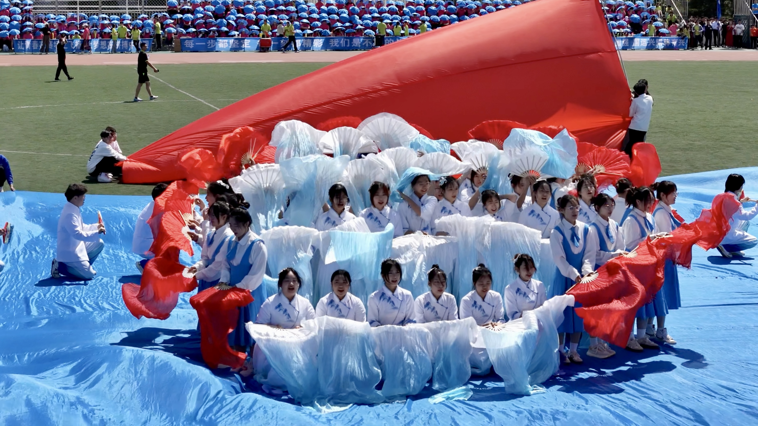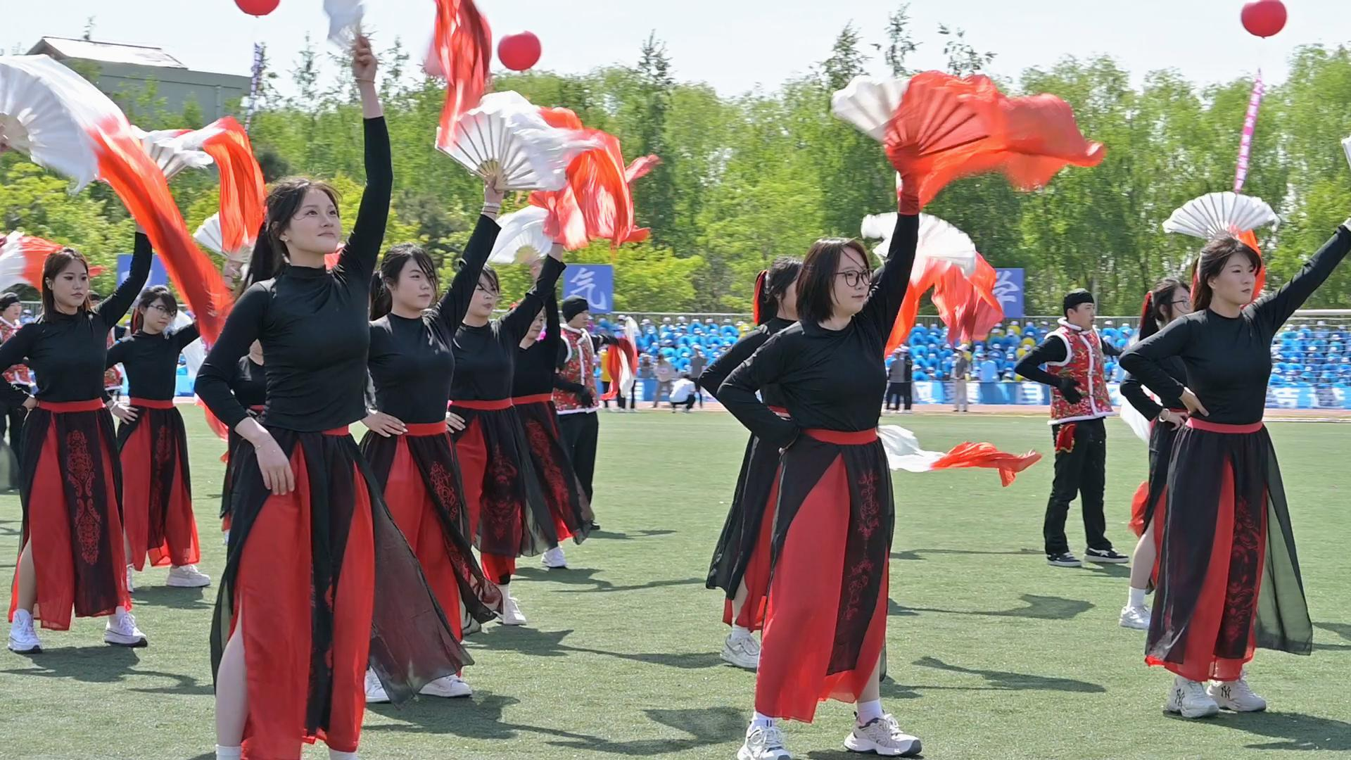 体育场中央,10个学院分别献上了精彩的大型文艺表演,学生们用热情和活力,演绎着青春最美的乐章。