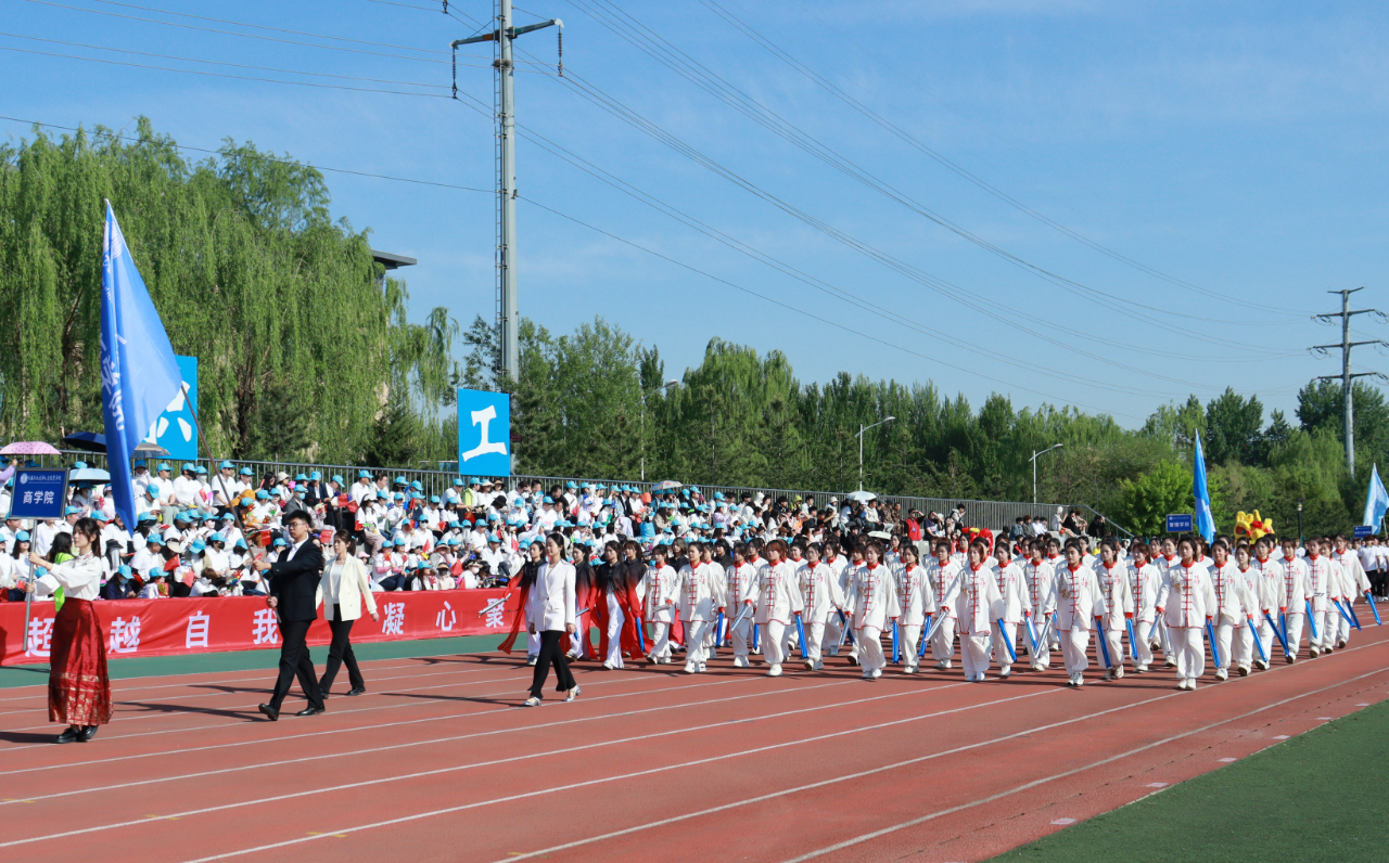 开幕式上,国旗护卫队、刀旗队、花束队、裁判员方队、教职工方队以及各学院方队依次入场。他们步伐整齐、口号响亮、精神抖擞、豪情满怀。