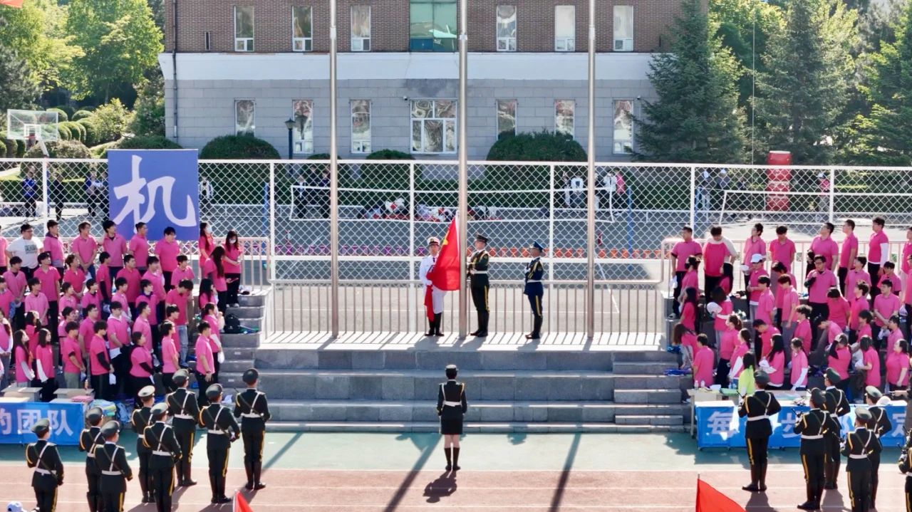 升国旗,唱国歌,鲜艳的国旗伴随着雄壮的国歌冉冉升起,在校园上空高高飘扬。