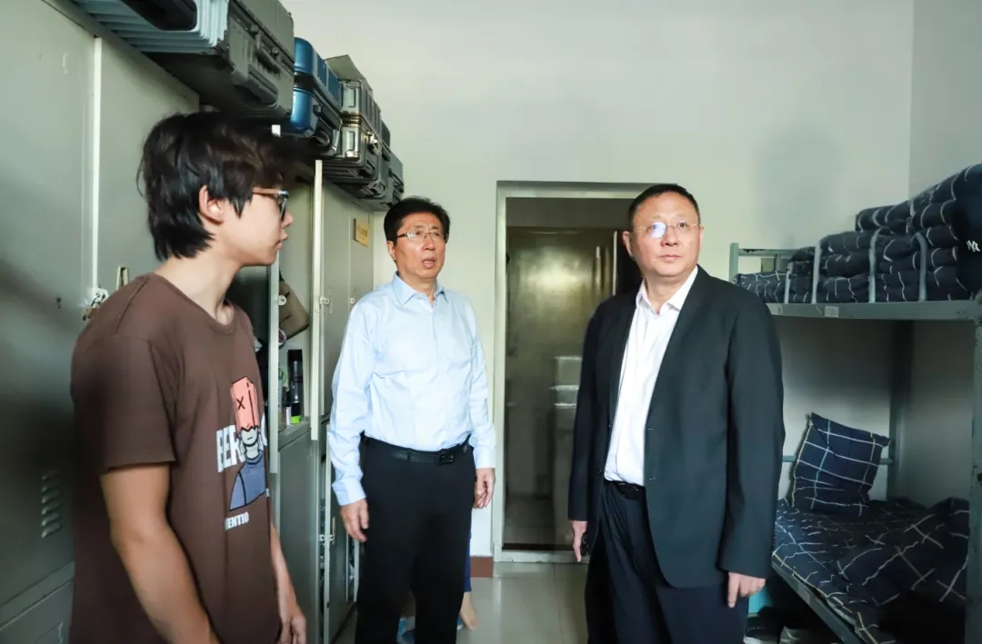 为进一步加强学生宿舍安全管理,消除安全隐患,营造安全、和谐、稳定的校园生活环境,学校于5月29日组织开展了全校学生宿舍安全大检查。校长潘福林、党委书记王煊、党委副书记周丹、纪委书记张哲人、安全工作处处长刘强、学生工作处处长庞旭,全体辅导员及相关工作人员组成检查组,对全校10栋宿舍楼1491间学生宿舍进行了全面细致的排查。