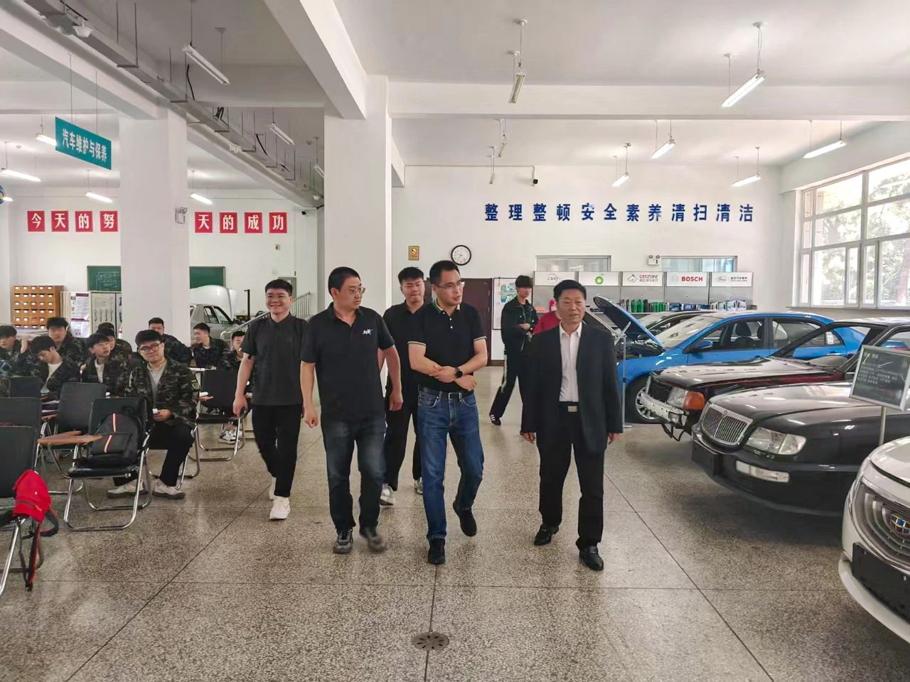 洽谈结束后,吉利汽车集团一行实地参观了机械与汽车工程学院汽车实训中心。