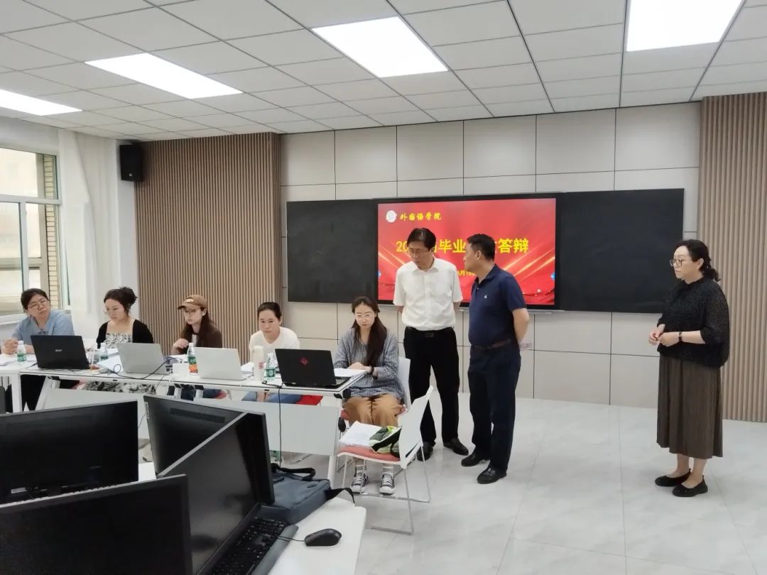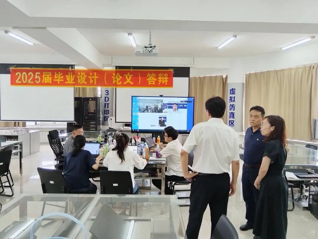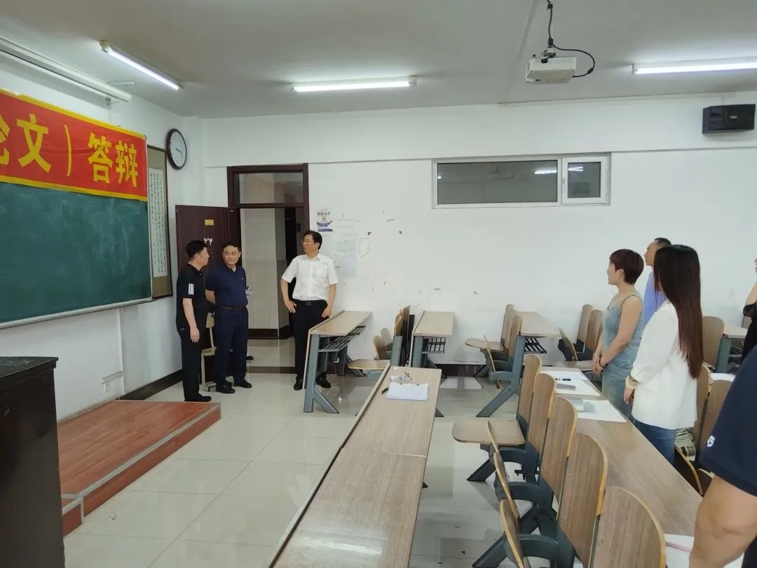 潘福林在答辩现场听取了部分同学的答辩过程并与答辩组教师进行了亲切交流,他详细了解了各答辩组的答辩流程、评分标准以及学生毕业设计(论文)质量等情况,重点检查了线下集中答辩的组织安排、场地设备保障、答辩材料等,并着重关注了线上答辩的技术支持与运行效果。他对各学院为保障答辩工作顺利进行所付出的努力和周密的安排给予了充分的肯定,强调全体答辩教师应该深刻把握毕业答辩作为人才培养重要环节的特性,紧密结合本届毕业生的实际情况,将答辩过程视为促进学生进一步规范论文、提升毕业设计(论文)质量的关键契机,鼓励大家继续发扬恪尽职守、精益求精的精神,以高度的责任感和饱满的热情持续做好后续工作,并且对所有答辩教师付出的辛勤劳动表示诚挚的慰问和衷心的感谢。