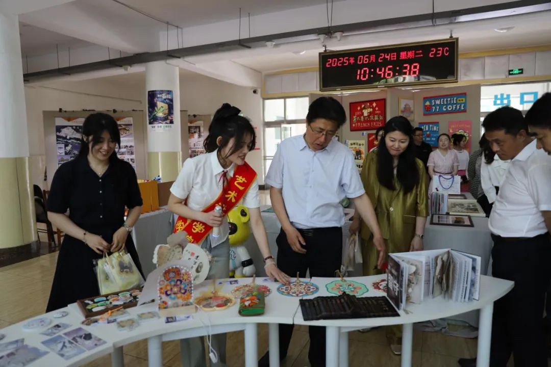 张兆华、潘福林等学校领导在类维顺和秦海雷的陪同下,认真参观了每一件作品,并与同学们进行了亲切交流。他们对同学们的作品给予了高度评价,对同学们在结业展中所展现出的创新精神和实践能力表示赞赏。