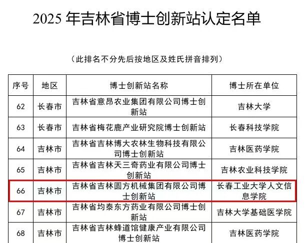 近日,吉林省科学技术协会官方网站正式公布了2025年吉林省博士创新站申报认定结果,我校由计算机科学与工程学院吴琼教授带领的团队成功获批博士创新站。此次获批标志着我校在推动教育、科技、人才与产业一体化发展方面迈出重要一步,为服务地方经济高质量发展和高层次人才培养注入新动能。