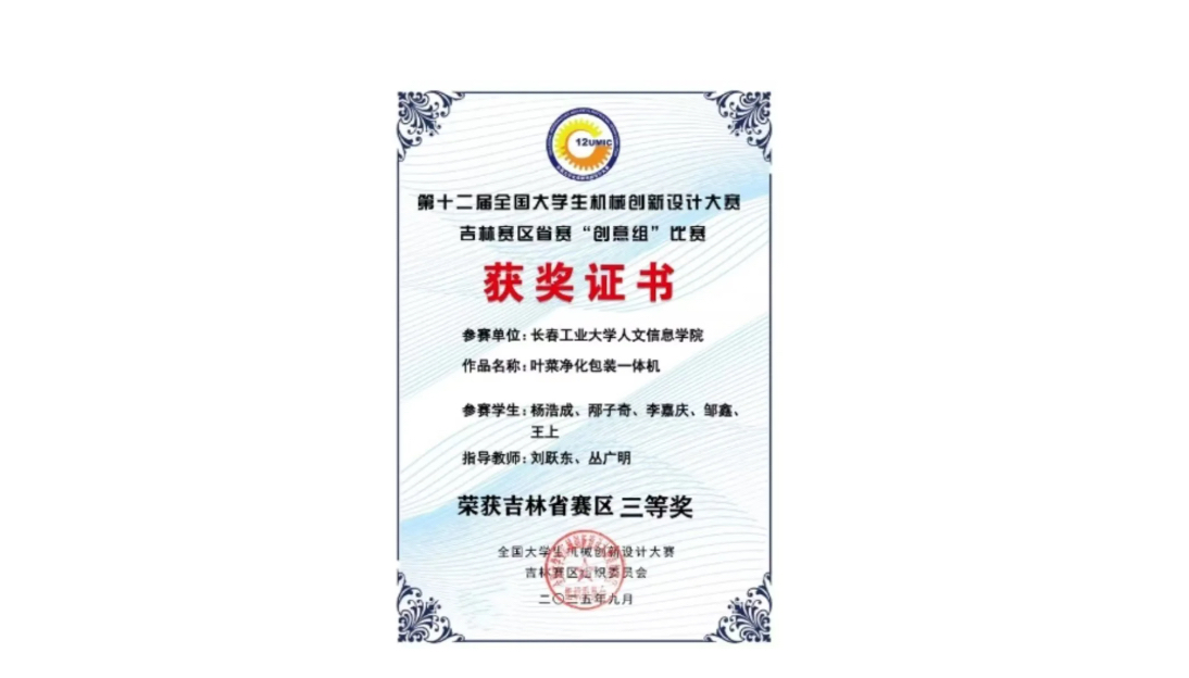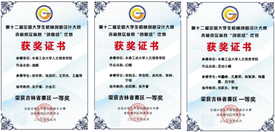 第十二届全国大学生机械创新设计大赛吉林赛区省赛“创意组”比赛,于9月20日在吉林电子信息职业技术学院落下帷幕。共有来自全省高校的330支参赛队伍参加比赛。经过专家评审和评审委员会复审,我校参赛队荣获一等奖3项,二等奖7项,三等奖1项。