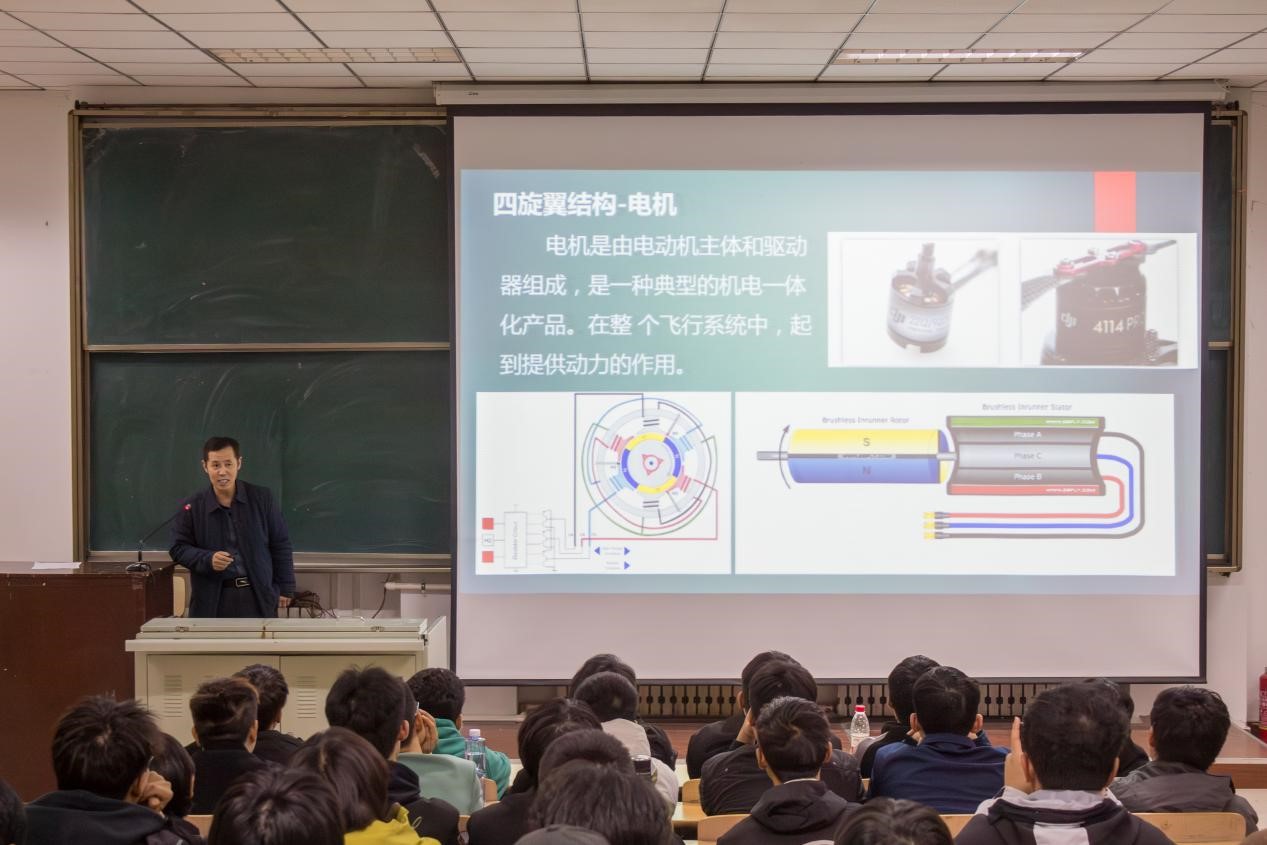 在跨界课堂的理论学习环节,两位主讲教师联袂登场。AI装备与智能控制微专业李颖老师的《无人机系统与原理》课程如同为无人机“解剖体检”,从内部结构到飞行逻辑,系统解析了其核心技术;无人机技术与应用微专业翟翼老师的《无人机操作基础与应用场景》课程带领大家“遨游天际”,多维场景生动展现无人机技术如何“飞入”千行百业。两门课程互为补充,帮助学生构建起从理论到场景的知识闭环。
