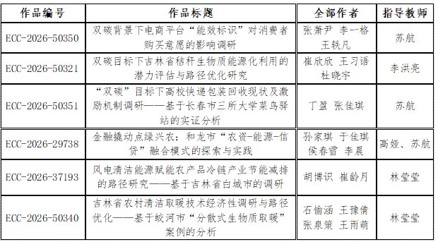 我校精心组织、积极备赛,共征集52组参赛作品,经严格形式审查,44组作品符合组委会要求成为有效作品,最终16组优秀作品晋级省赛选拔,其中6组作品脱颖而出,晋级现场答辩环节。备赛期间,我校高度重视赛事组织工作,组建专项指导团队,围绕选题调研、模型构建、报告撰写、答辩技巧等关键环节开展多轮指导与打磨。参赛师生紧扣“双碳”目标下能源经济发展的核心议题,聚焦吉林省能源转型实际,深入开展实地调研与数据分析,形成了一批兼具理论深度与实践价值的研究成果。从秸秆生物质能源化利用、农村清洁取暖技术优化,到电商平台“能效标识”消费影响调研、“农资-能源-信贷” 融合模式探索,参赛作品紧扣地方能源发展痛点,展现了我校学生扎实的专业功底与敏锐的问题意识。
