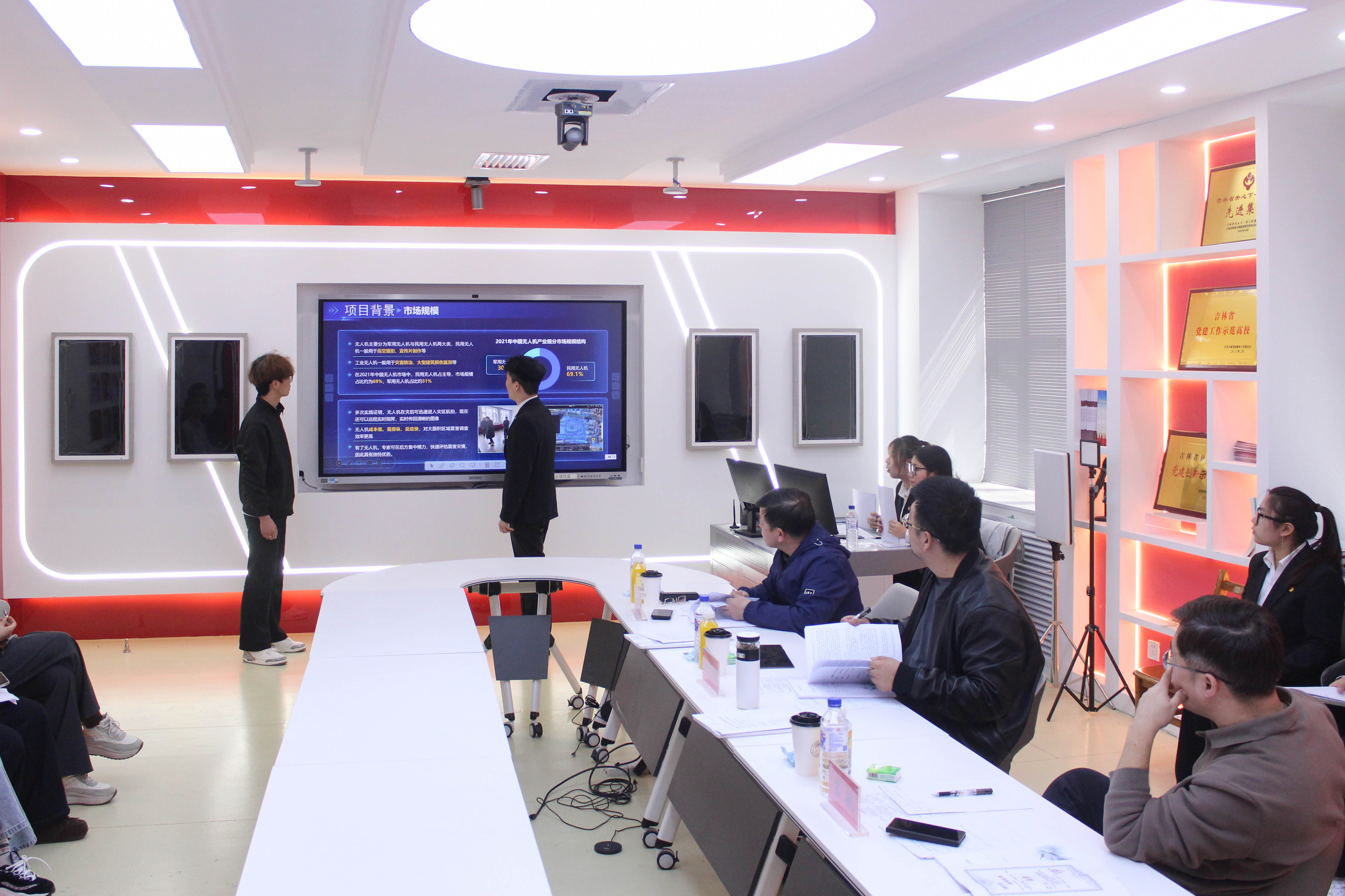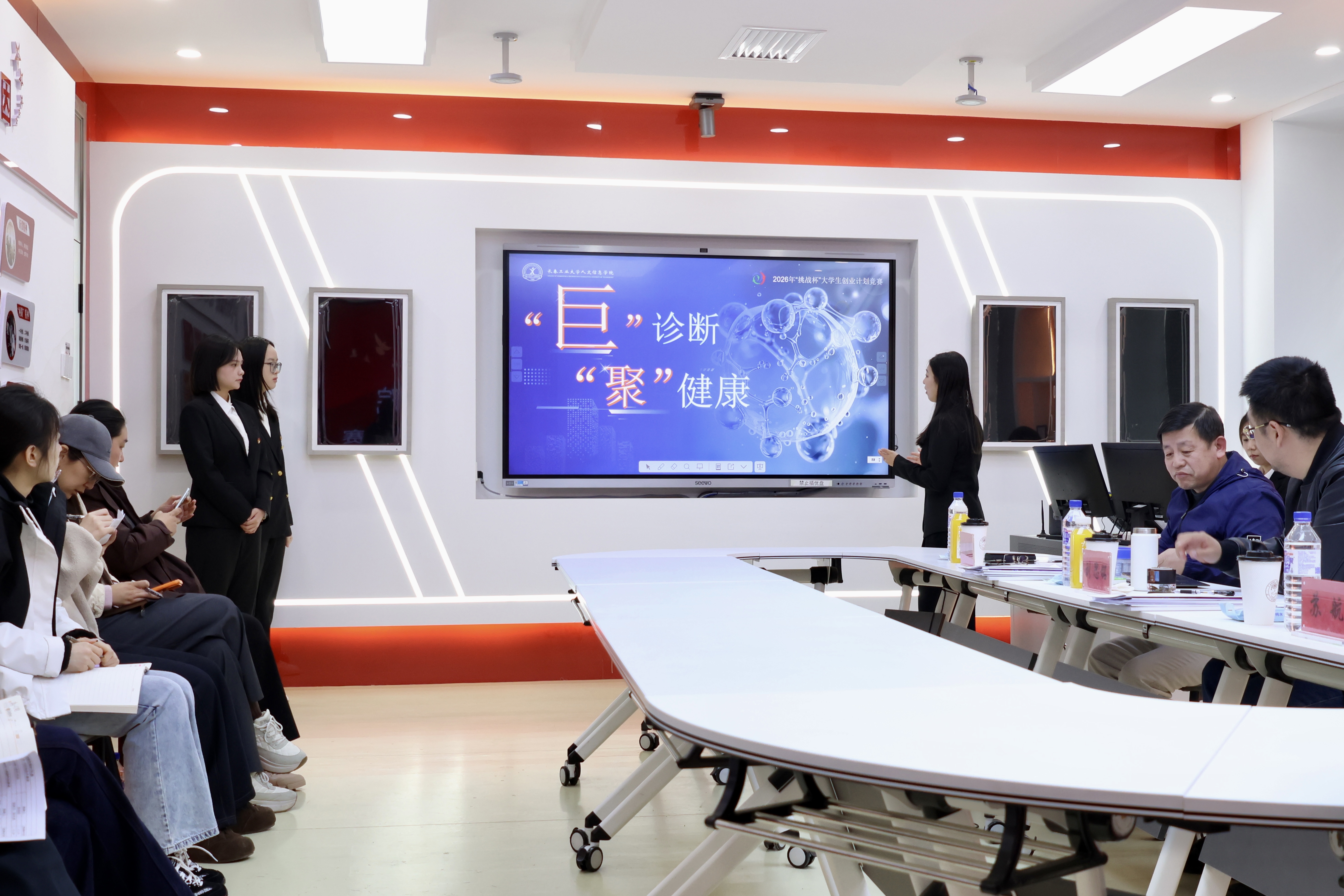 经各学院选拔推荐及校内专家初评,本次校赛共有31支队伍入围终审决赛,分新一代信息技术、生物医药与健康科技、新能源新材料、现代农业与食品科技、新消费与文化创意、现代服务与社会治理六大赛道展开角逐。答辩现场,各参赛团队通过PPT展示、视频演示、实物展示等形式,全面介绍项目背景、调研数据、运营模式及发展规划。评委们围绕社会价值、创新性、可行性、发展前景等方面进行评审并给予专业指导。