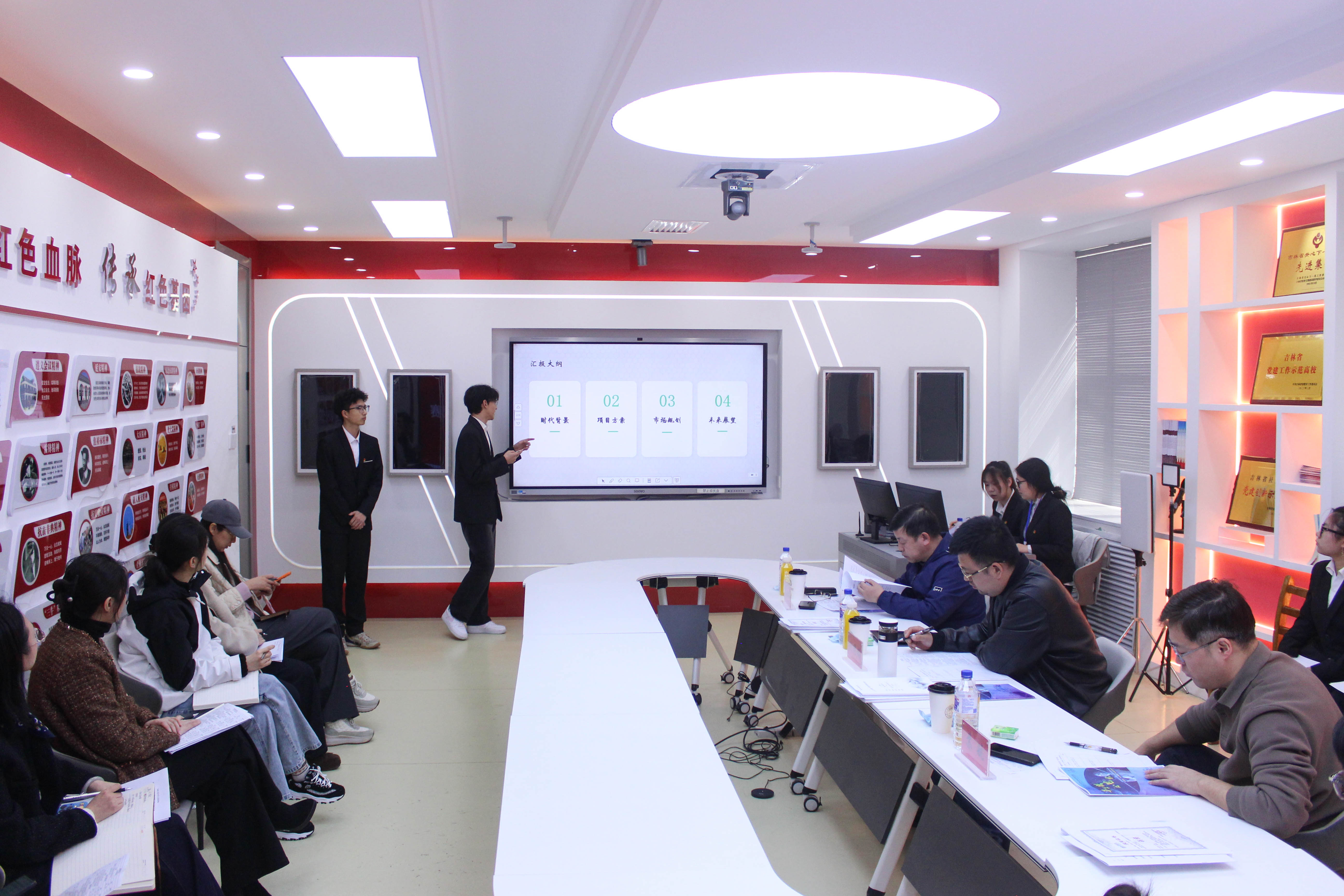 我校2026年“挑战杯”大学生创业计划竞赛校赛终审答辩会于4月13日下午在新时代智慧党建工作室顺利举行。本次竞赛邀请全国青联委员、省青联副秘书长、北京市君泽君(长春)律师事务所高级合伙人刘思铭博士担任校外专家评委,商学院院长苏航、管理学院院长宋殿辉担任校内专家评委。
